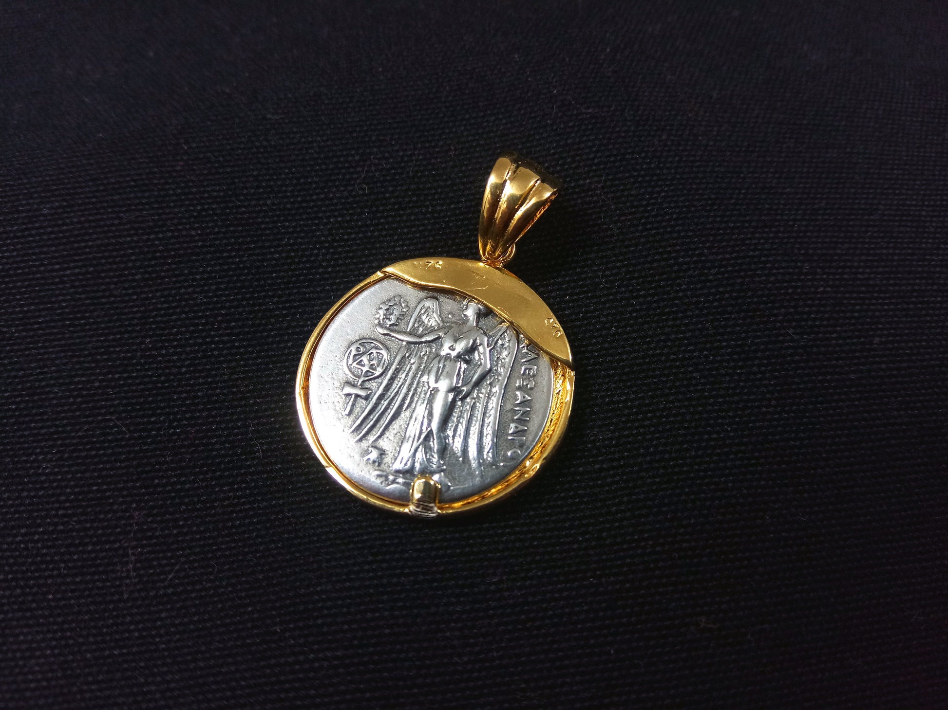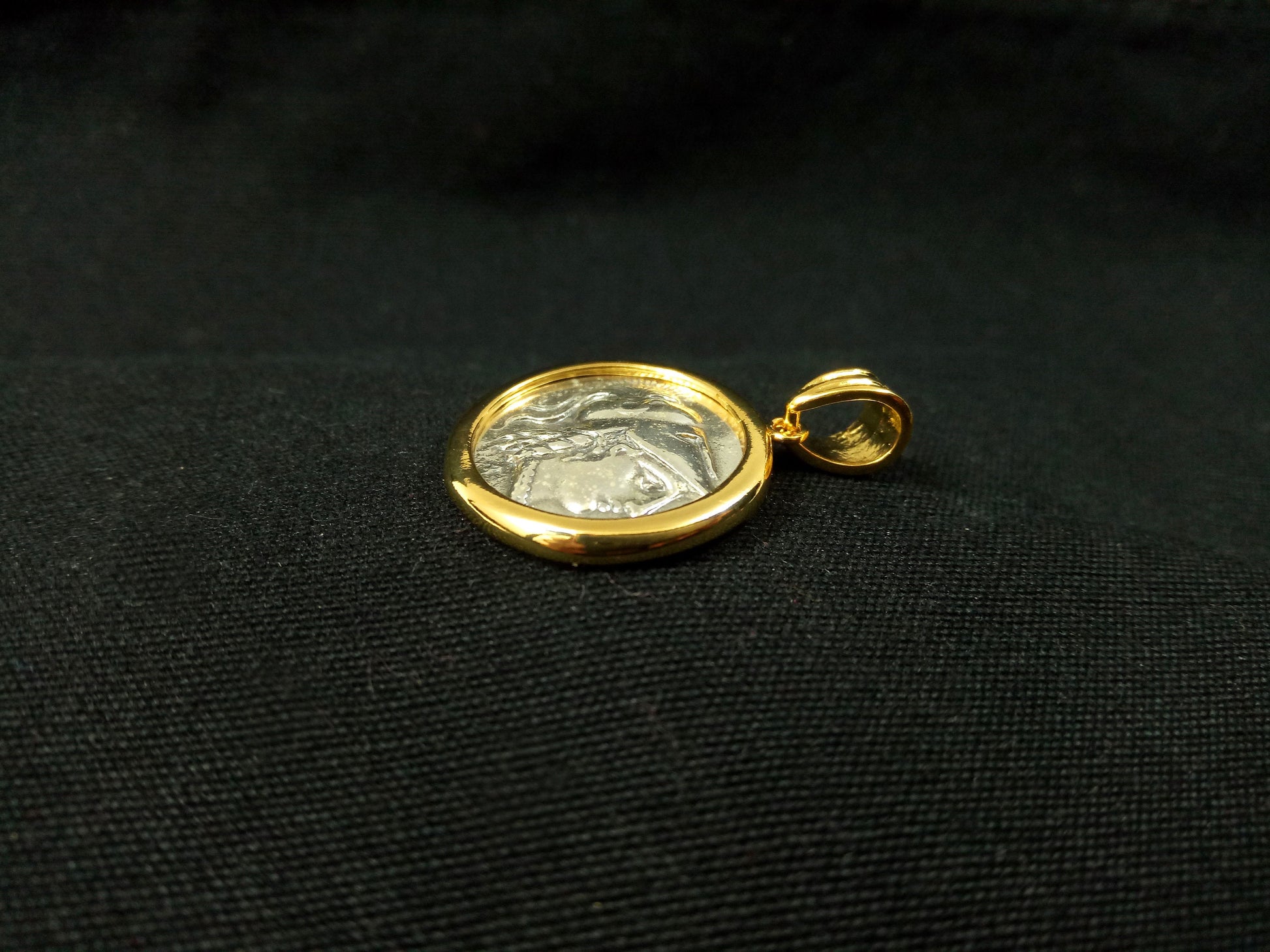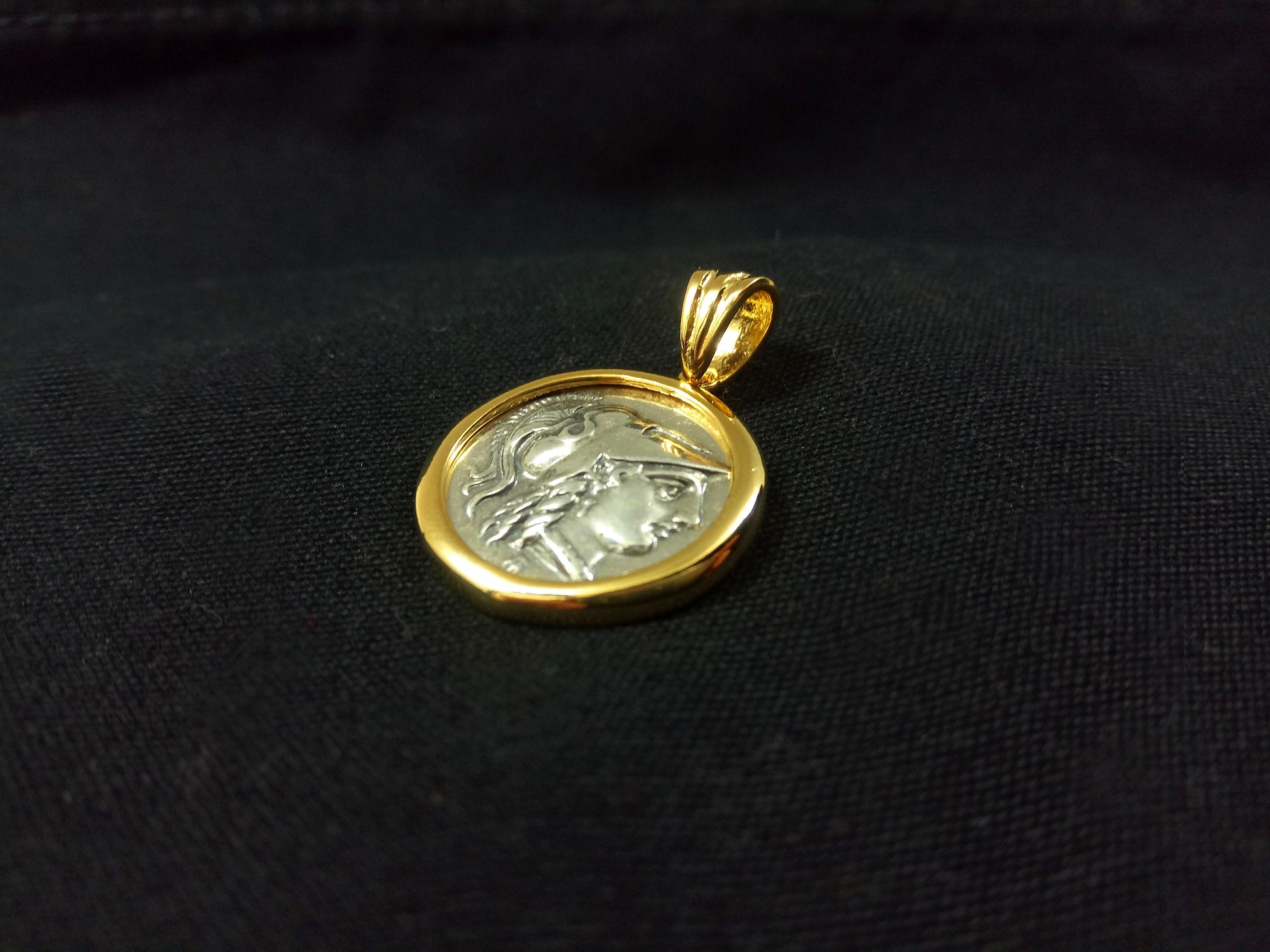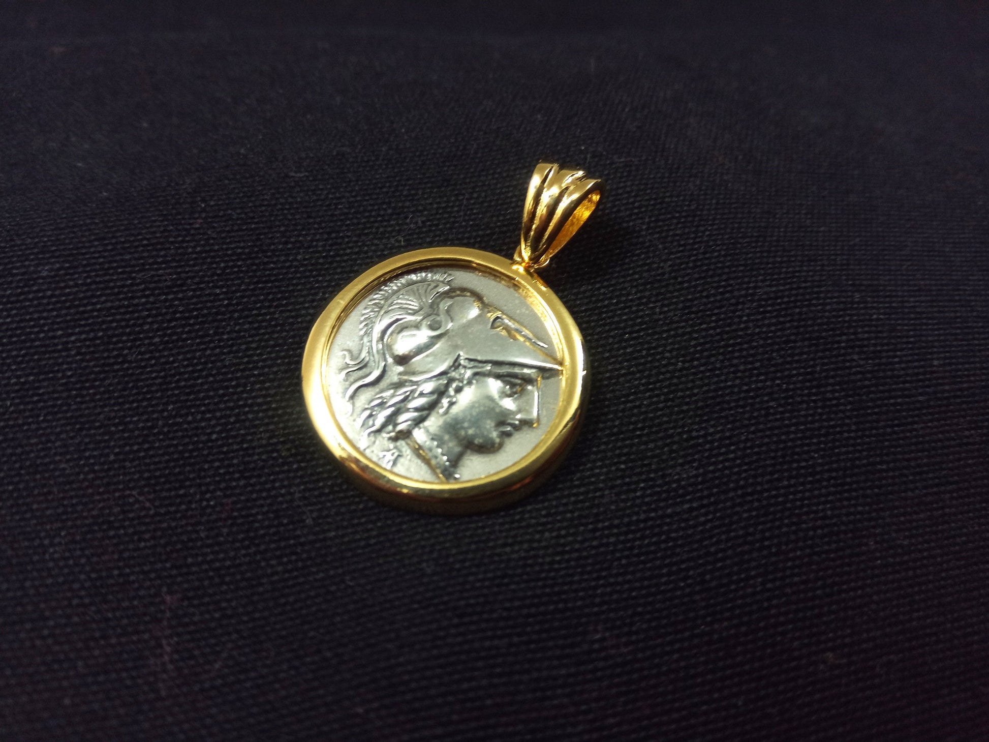 Sterling Silver 925 Grecian Goddess Athena Gold Plated 21 mm Greek Pendant, Greek Jewelry Pendant, Griechische Vergoldete Anhanger Schmuck