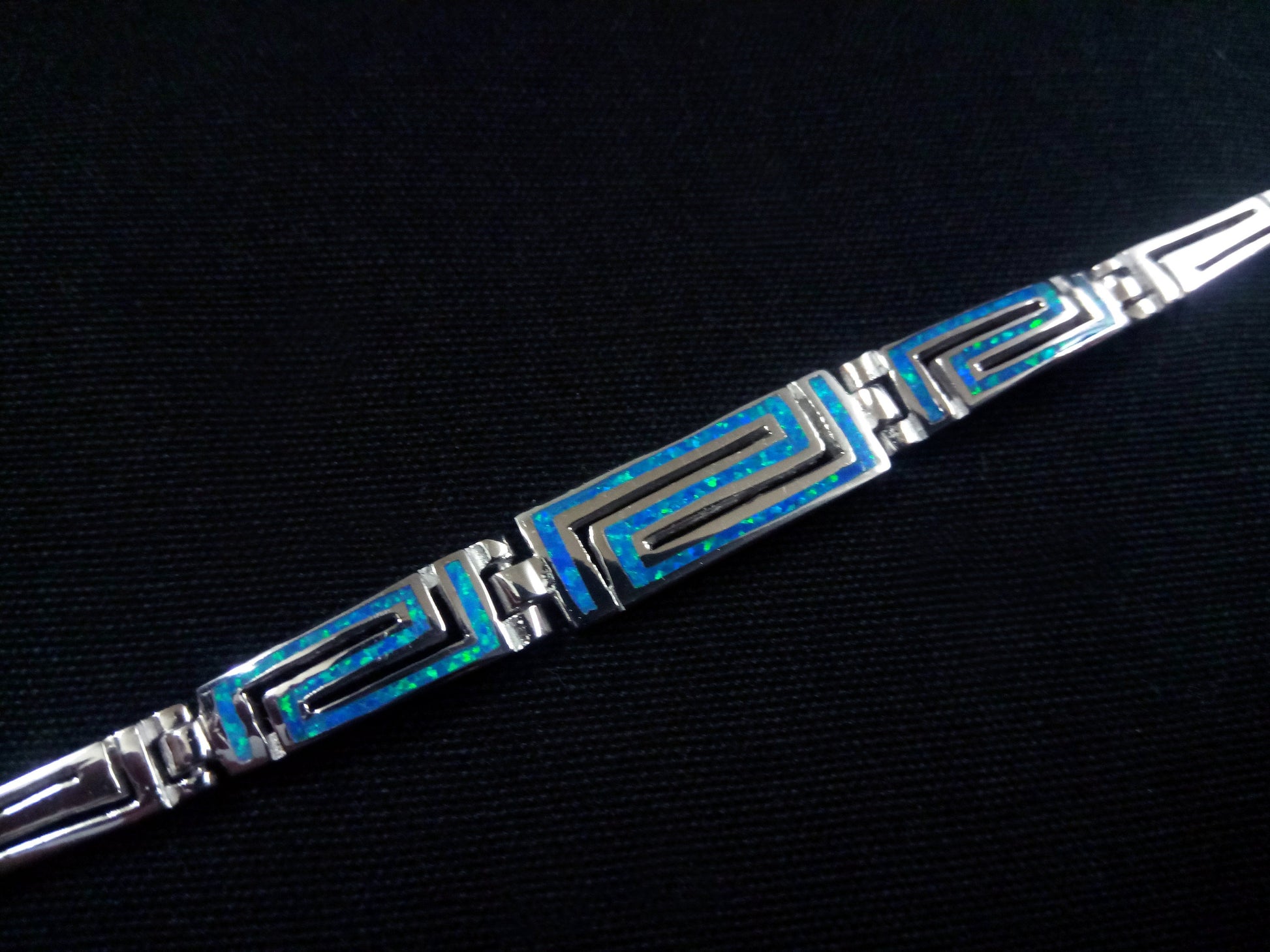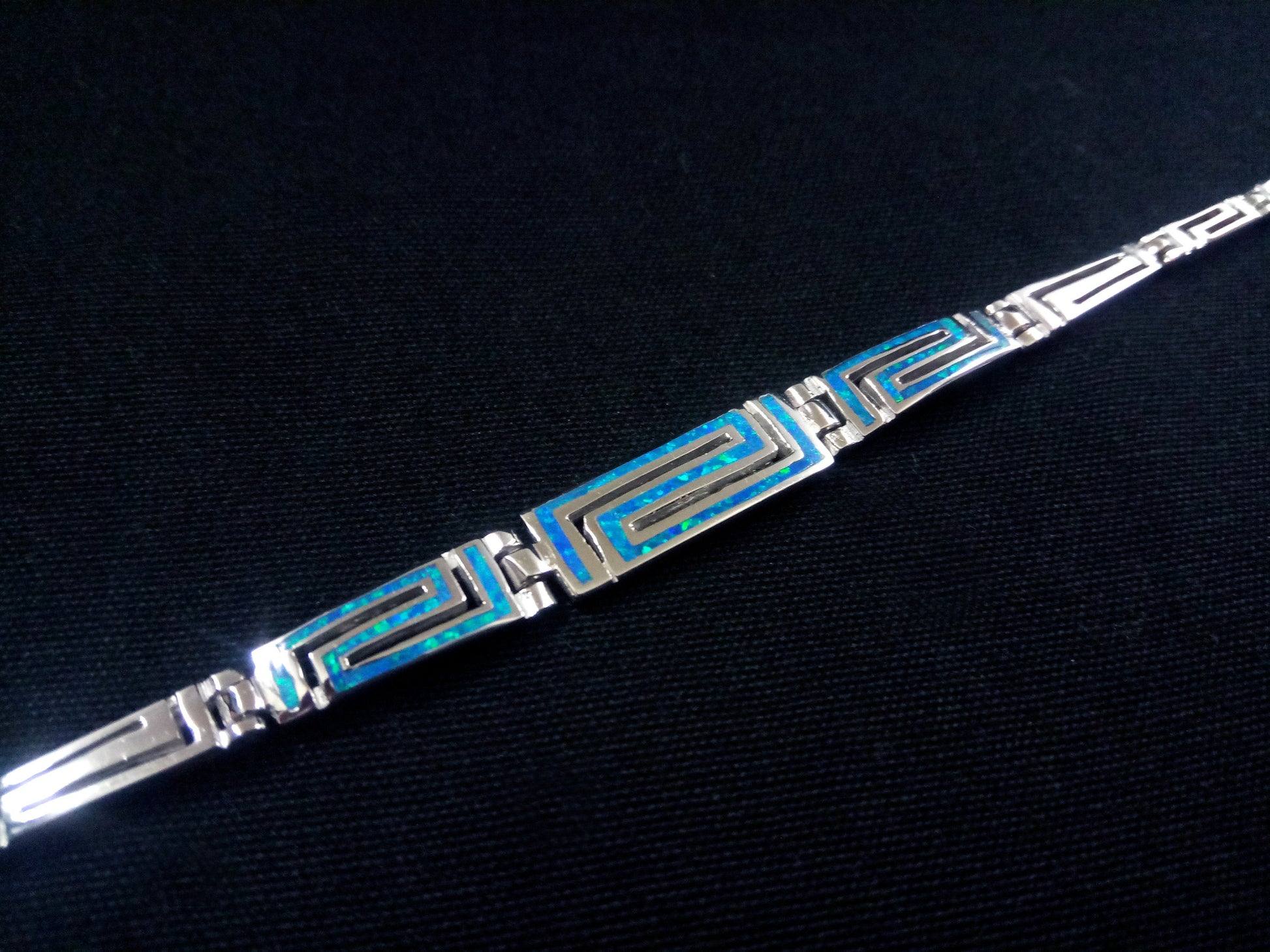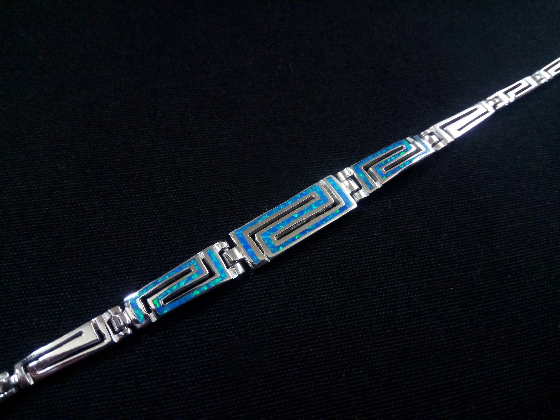 Sterling Silver 925 Greek Gradual Bracelet, Fire Rainbow Blue Opal Bracelet 19cm, Griechischer Blau Opal Armband, Bracelet Bijoux Grecque