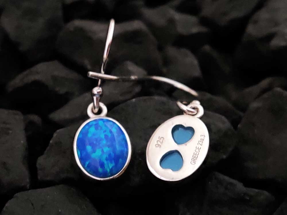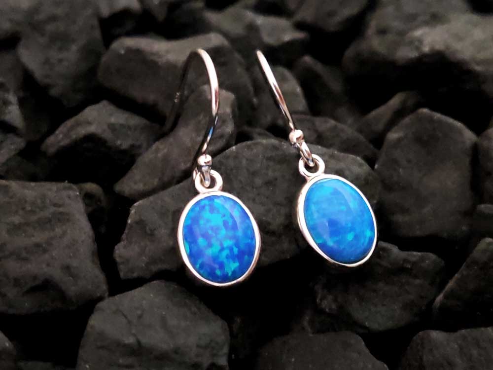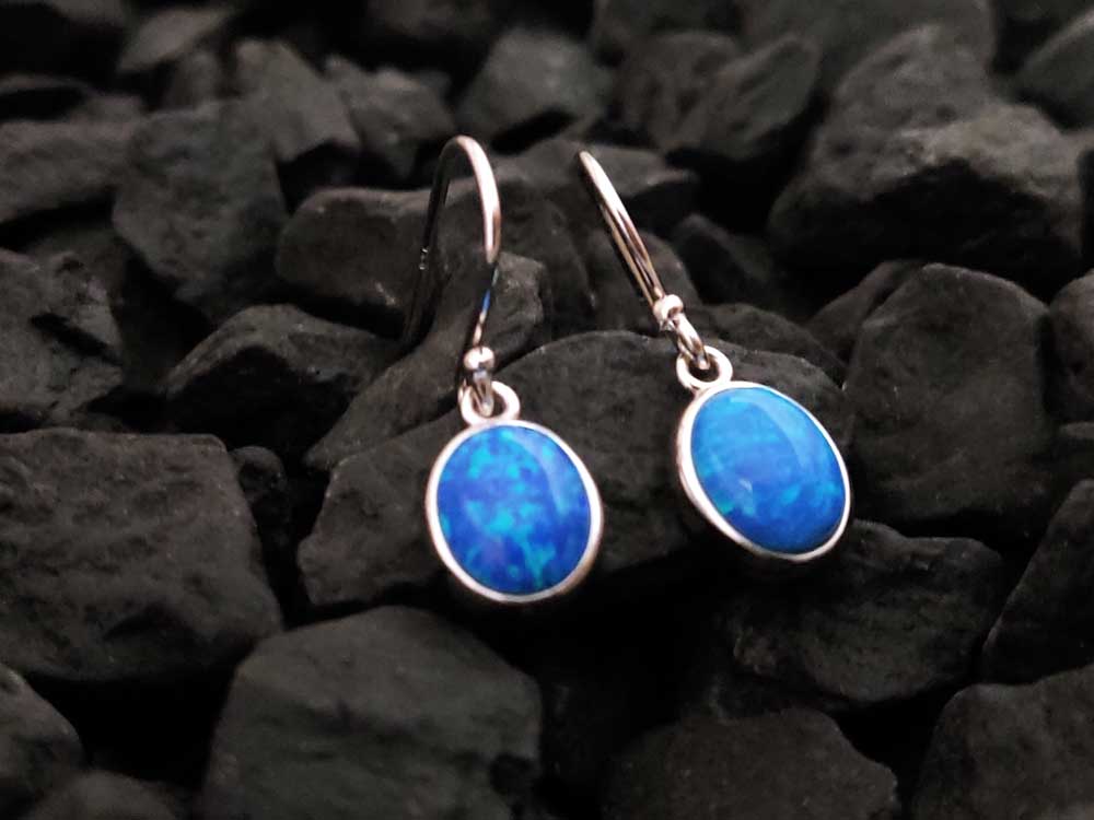 Blue Opal Oval Stones Dangle Earrings 10x9mm