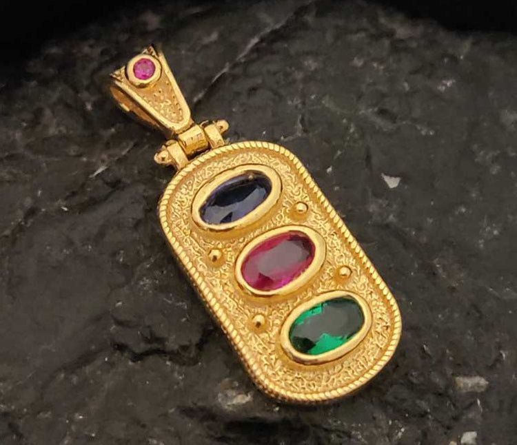 • Design: Rectangular pendant inspired by Greek Byzantine art.