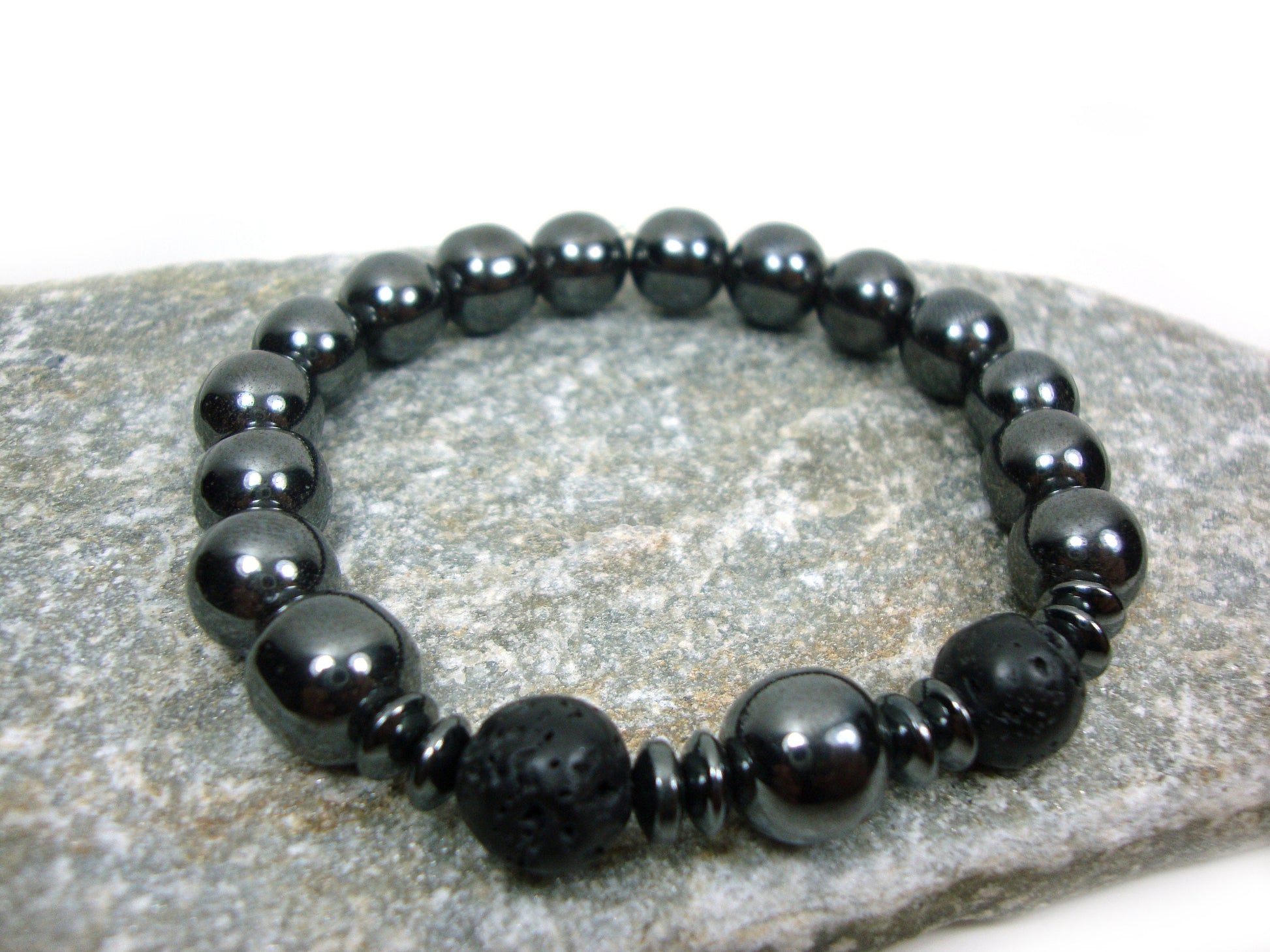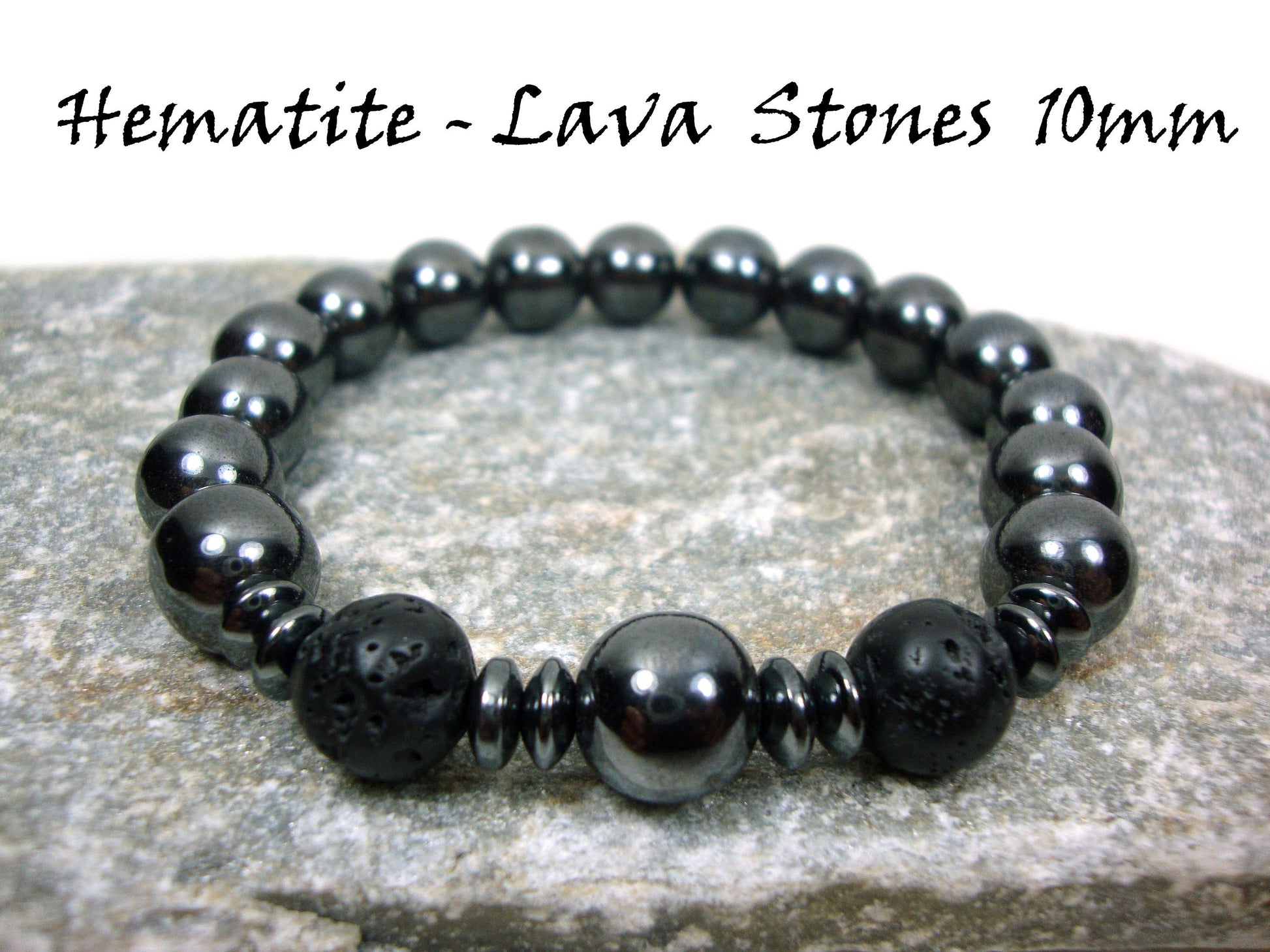 Natural Volcanic Lava - Hematite Stones 10mm Bracelet, Hematite Bracelet, Hematite Jewelry, Lava Bracelet, Lava Jewelry, Hematite Armband