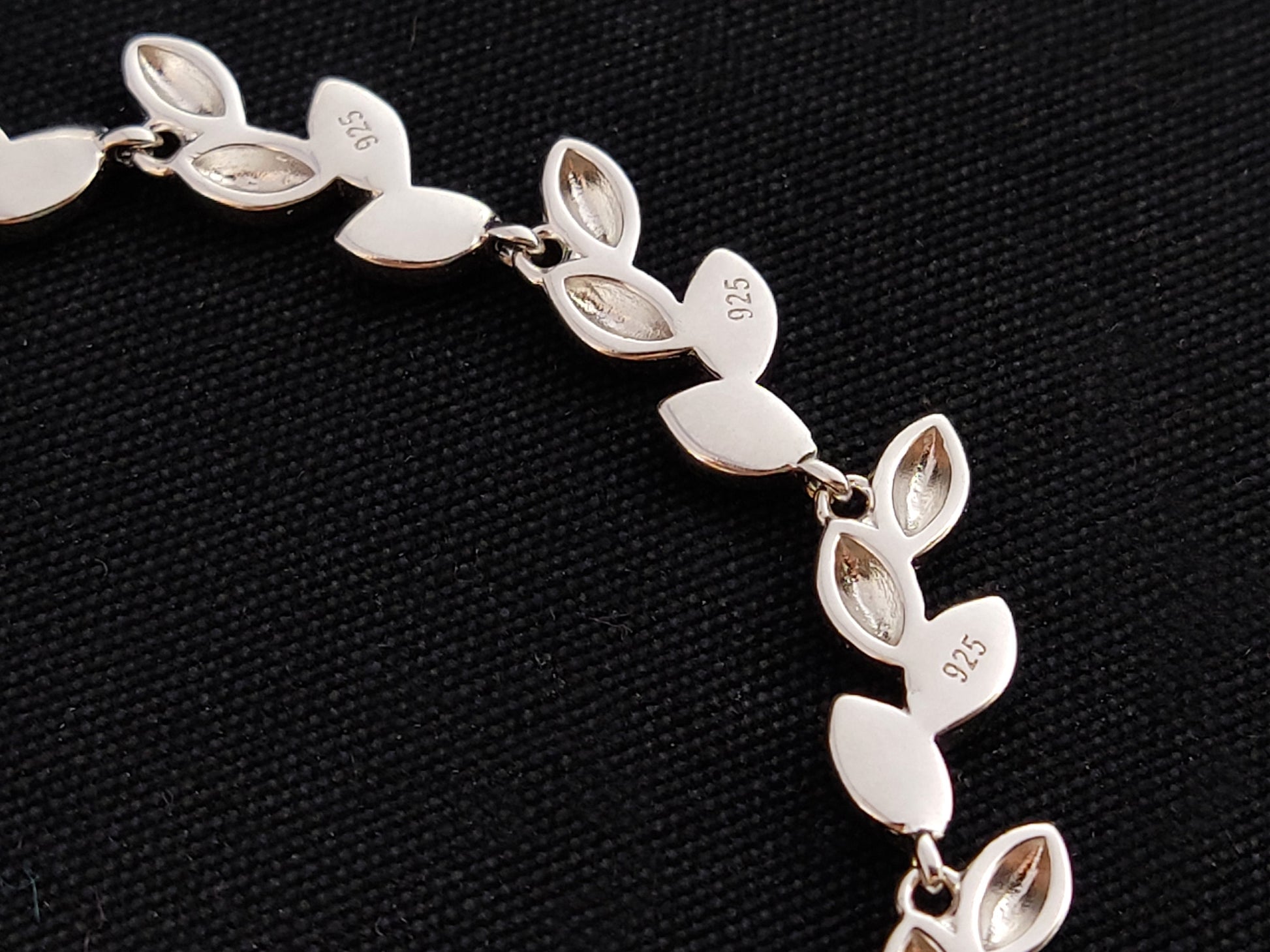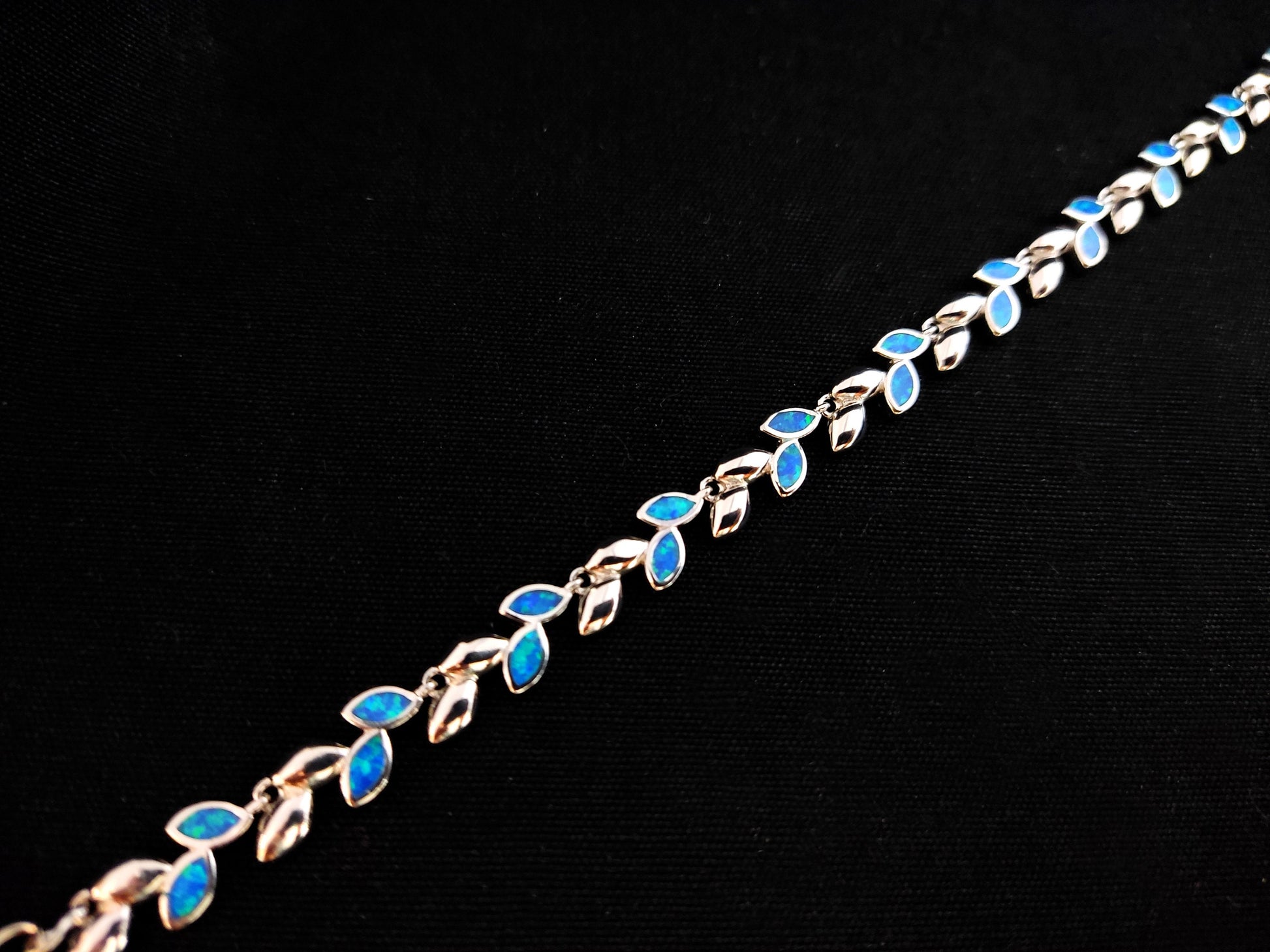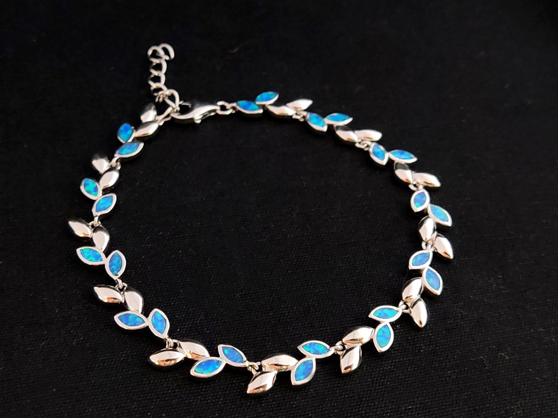 Sterling Silver 925 Fire Rainbow Blue Opal Greek Olive Leaf Leaves Bracelet, Griechischer Silber Blau Stein Armband, Bracelet Grecque Opal
