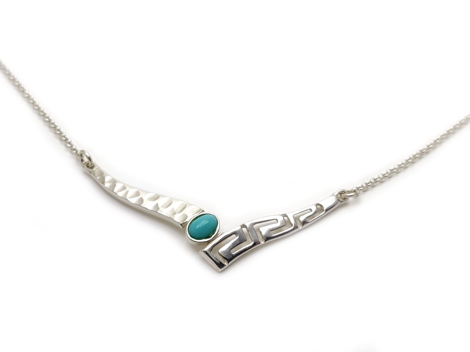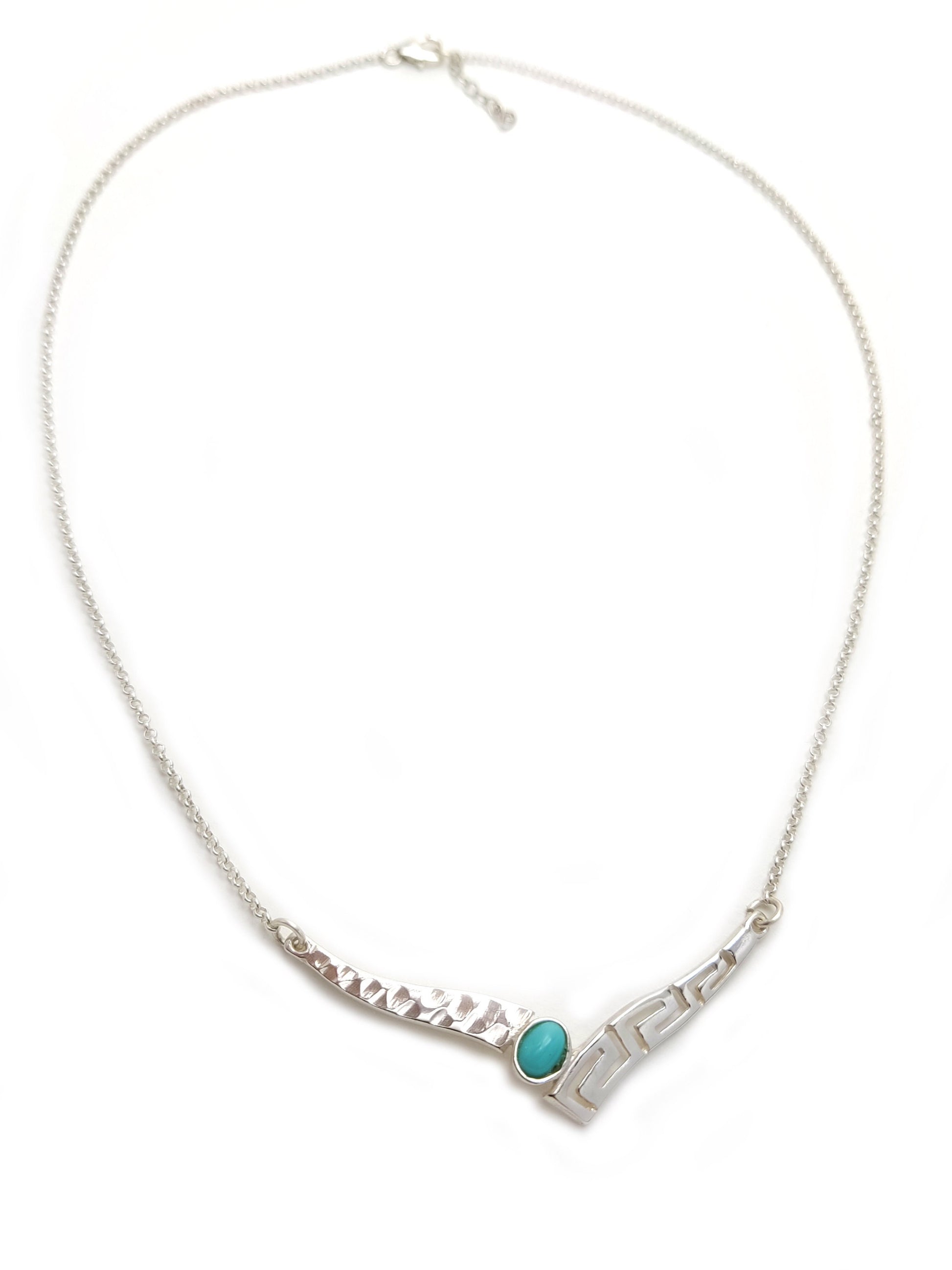 Greek Silver Necklace, Meander Turquoise Stone Chain Fine Necklace, Griechischer Silber Schmuck Halskette, Bijoux Collier De Grece, Greece
