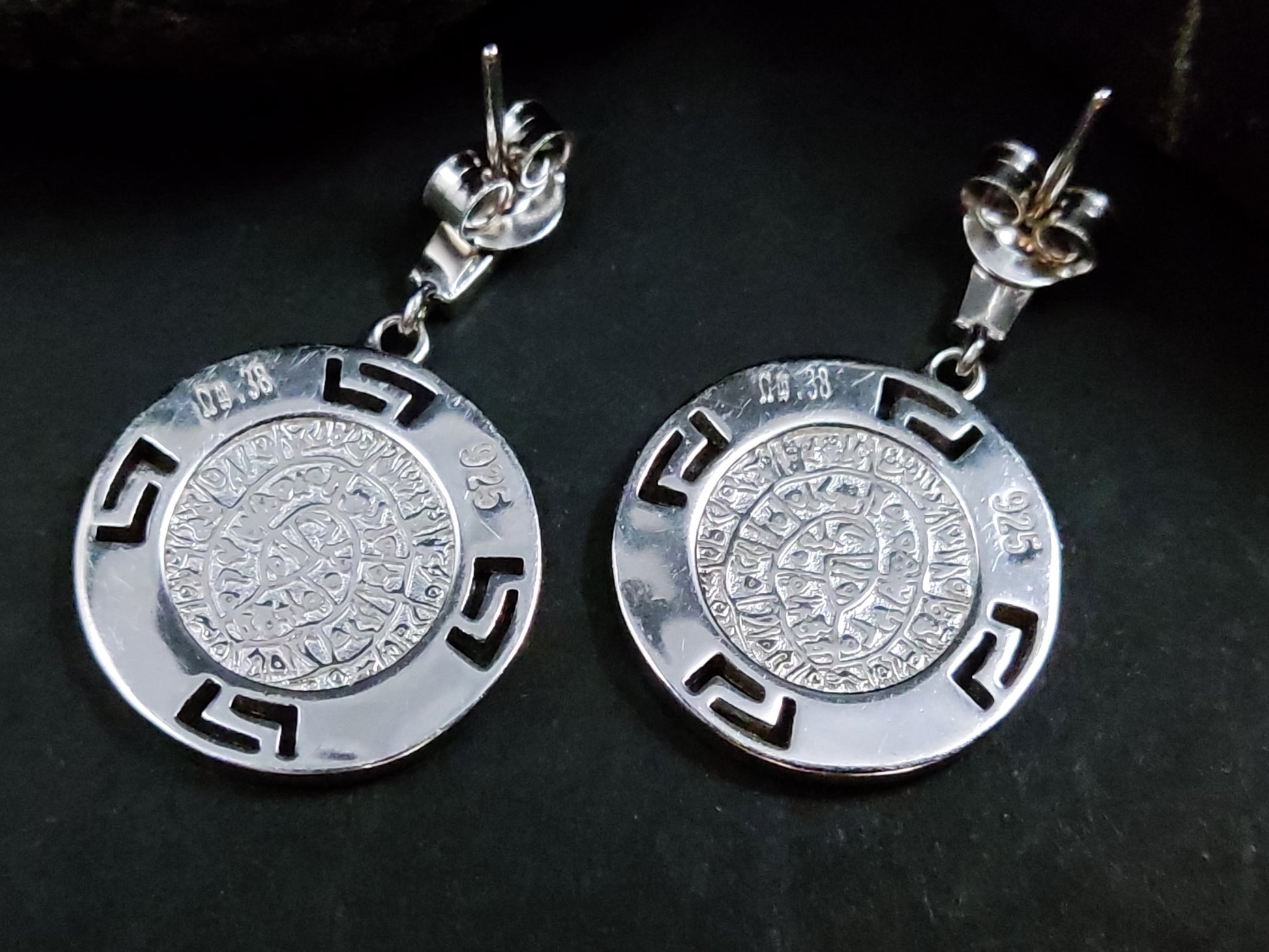 Phaistos Disc Blue Opal Dangle Silver Earrings 28x18mm