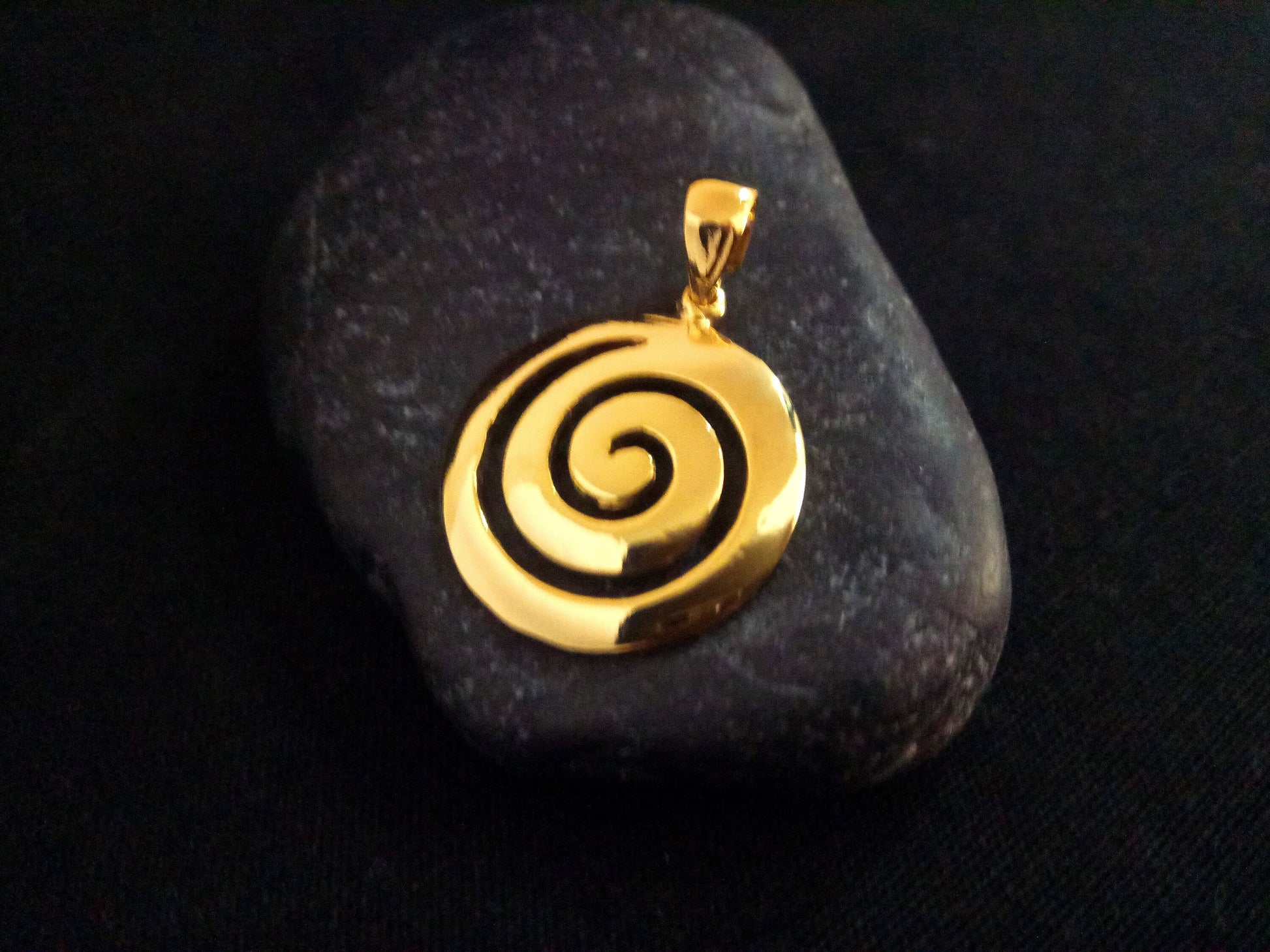 Sterling Silver 925 Greek Spiral Circle Of Life 21mm Gold Plated Round Galaxy Pendant, Meander Silver Pendant, Griechischer Silber Anhanger
