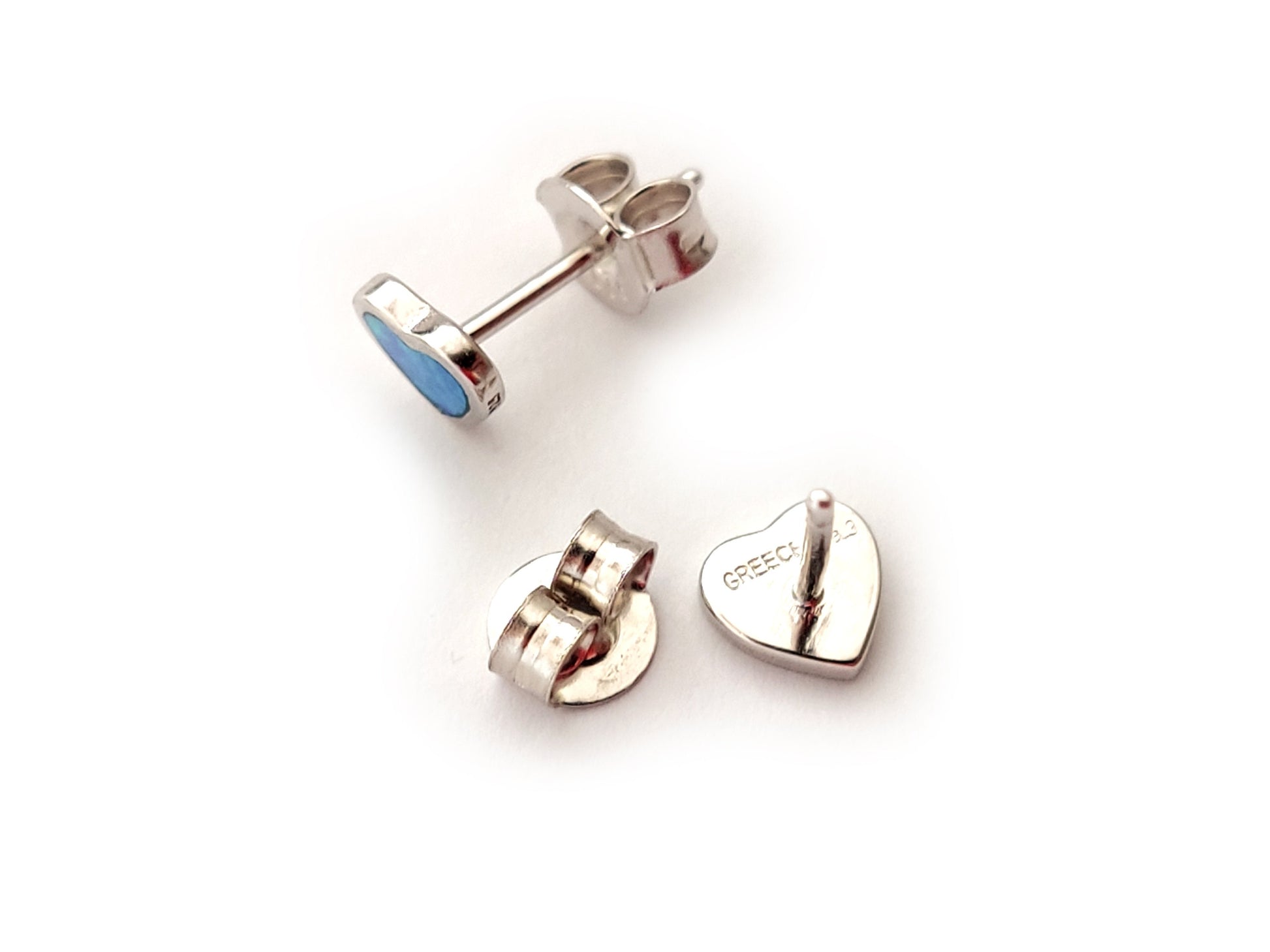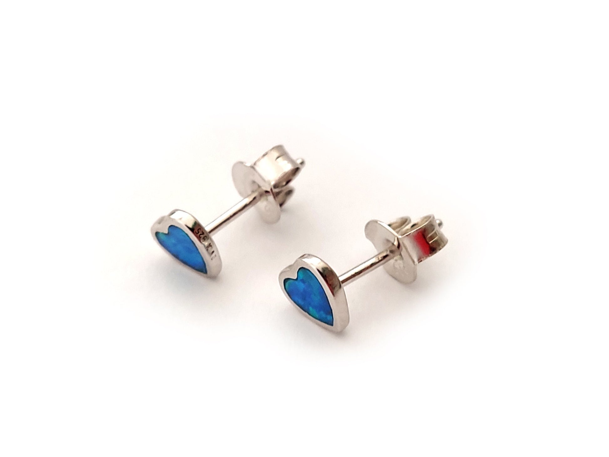 Heart Opal Earrings, Opal Earrings, Small Earrings 6mm, Sterling Silver 925, Modern Heart Jewelry, Greek Jewelry, Round Earrings
