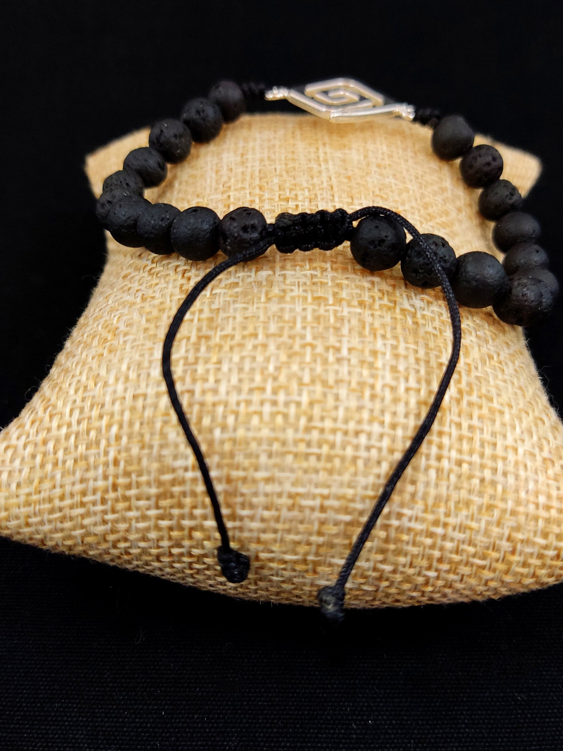 Silver 925 Hammered Greek Key & Volcanic Lava Stones 6mm Bracelet, Greek Jewelry Shop, Jewelry From Greece, Griechischer Silber Armband