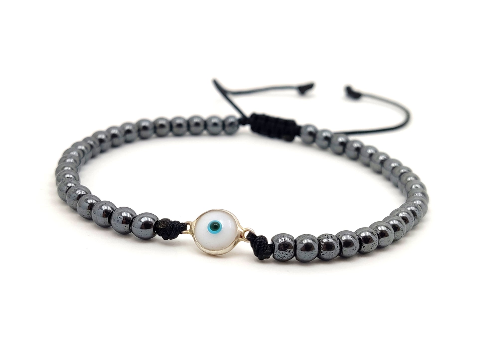 Silver Evil Eye Bracelet, White Evil Eye Nazar Greek Jewelry Bracelet, Mati Bracelets, Griechischer Silber Armaband Auge, Bijoux Grecque