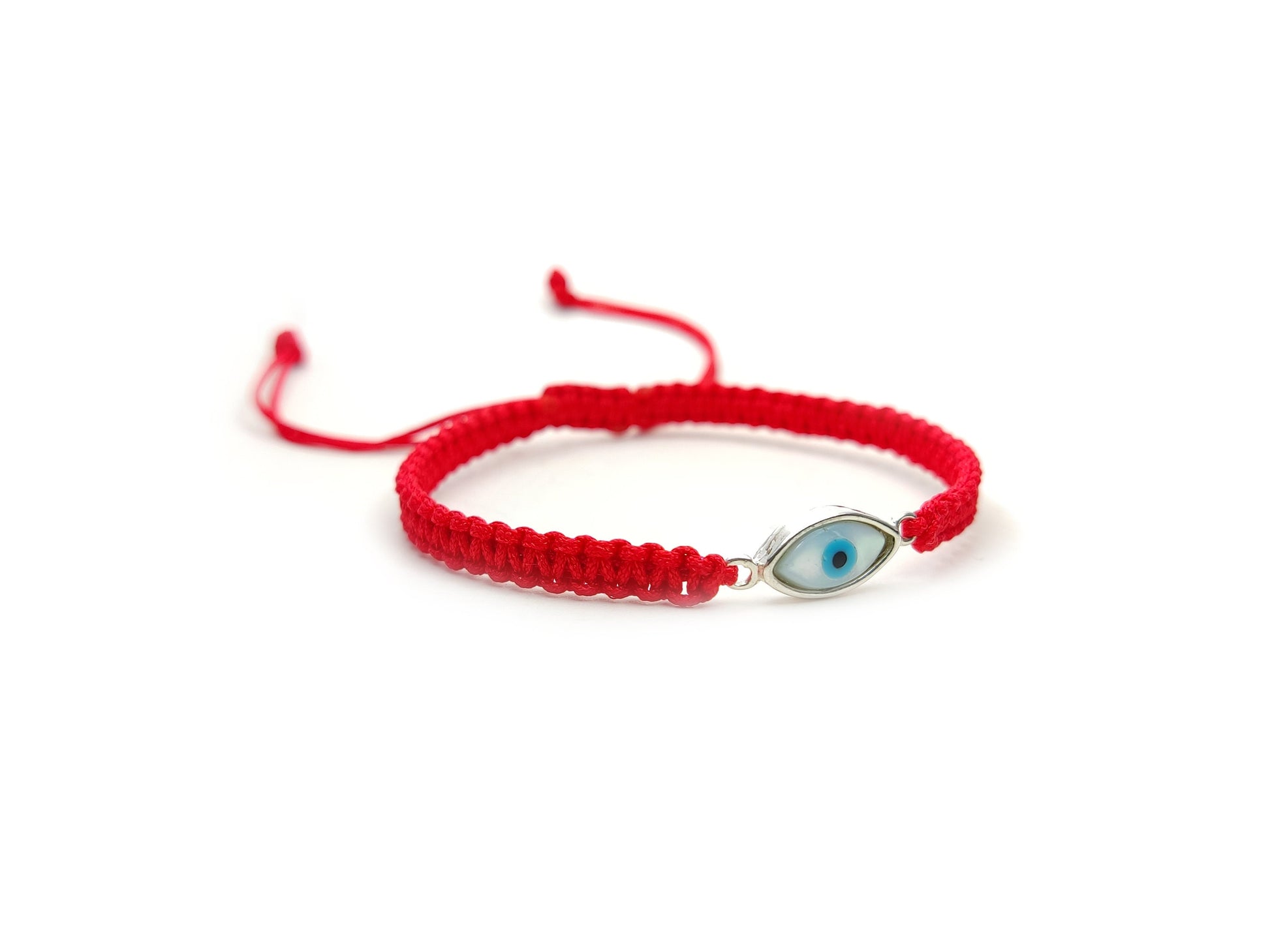 Sterling Silver 925 Greek Evil Eye Mati Good Luck Adjustable Macrame Red Bracelet 12x6mm , Griechische Silber Armband, Bijoux Grecque