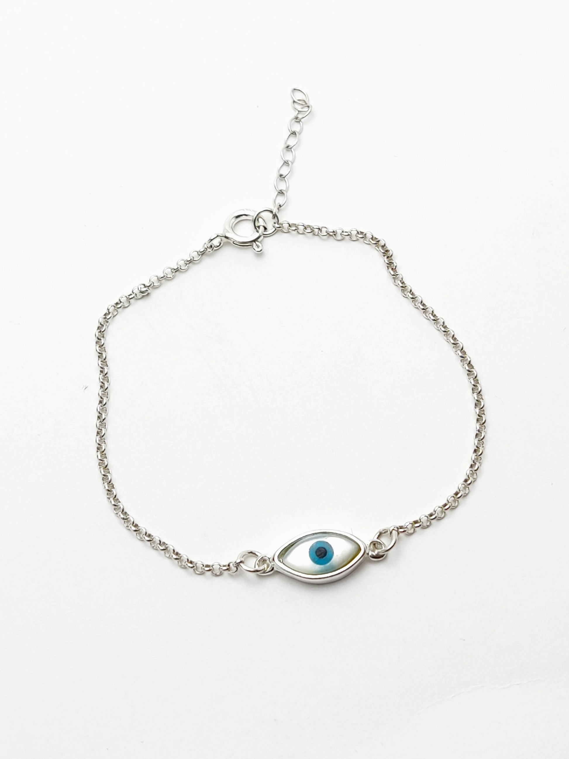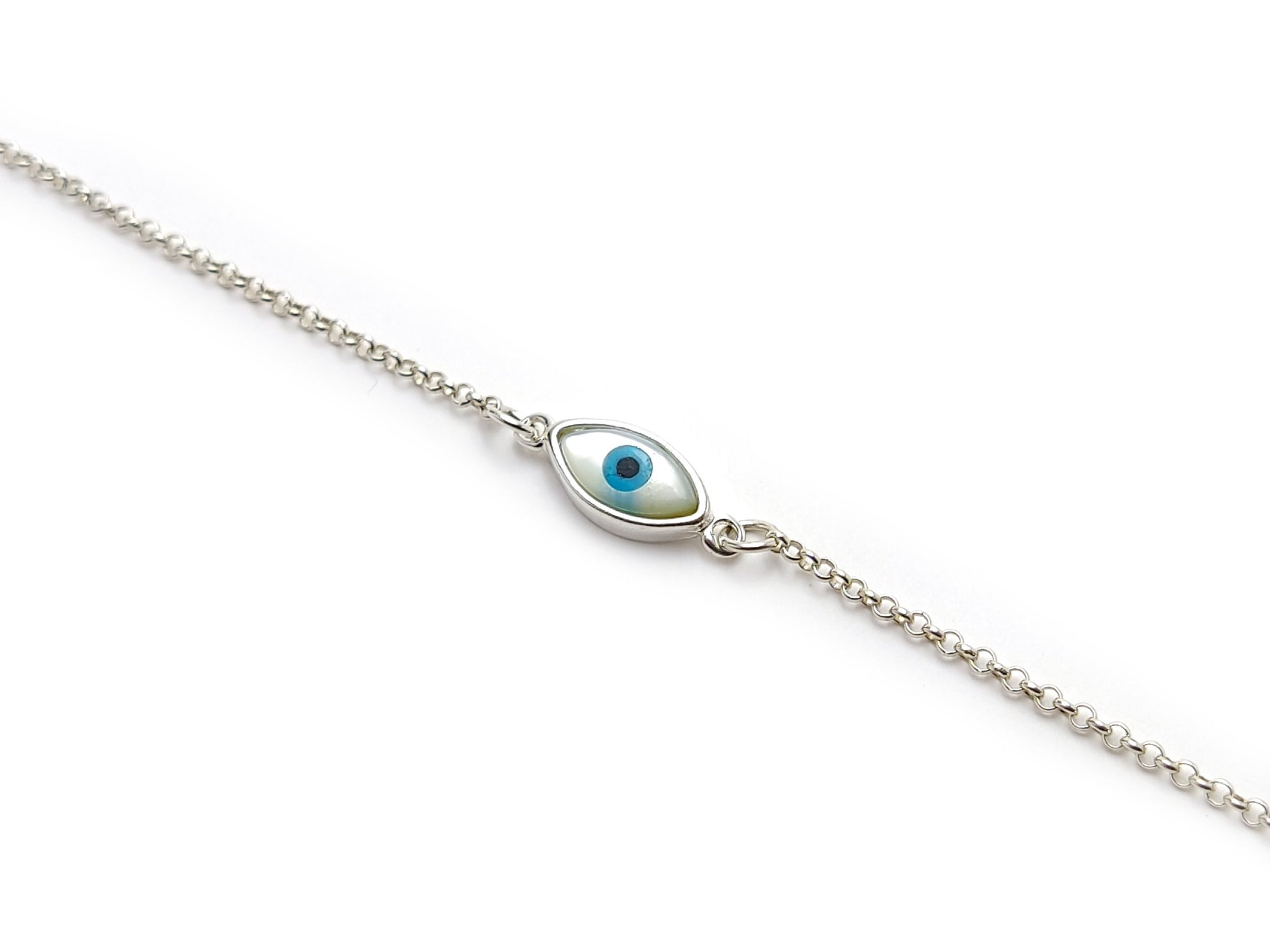 Sterling Silver 925 Evil Eye 13x7mm Fine Bracelet, Jewelry From Greece, Good Luck Charm Bracelet, Greek Turkish Small Evil Eye Fine Bracelet