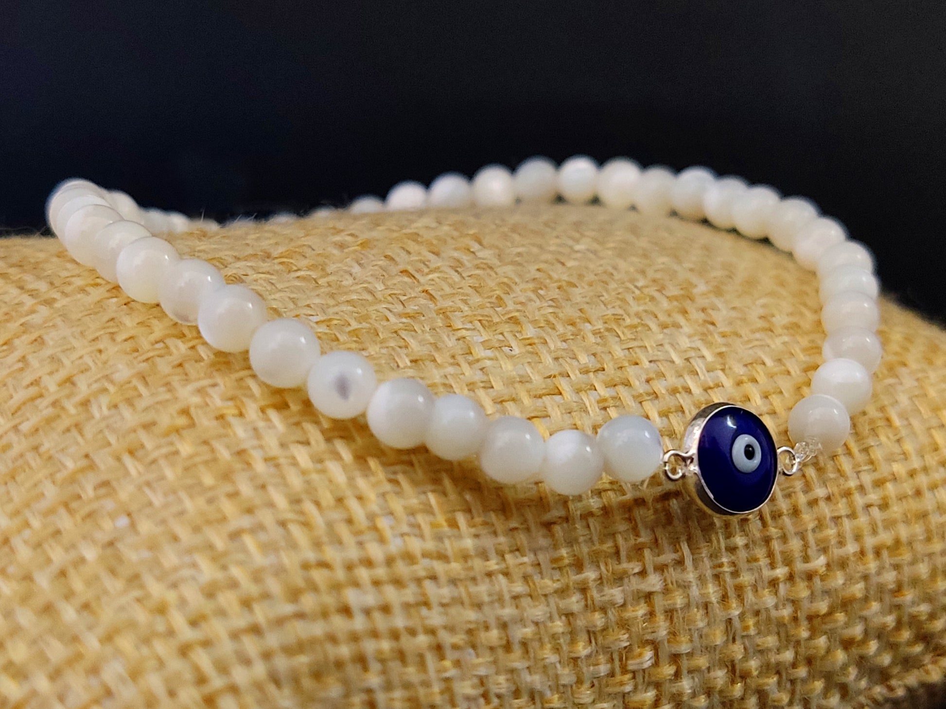 Sterling Silver 925 Greek Blue Evil Eye & Natural Mother Of Pearl Stones 4mm, Evil Eye Bracelet, Greek Bracelet, Griechischer Blau Auge Mati