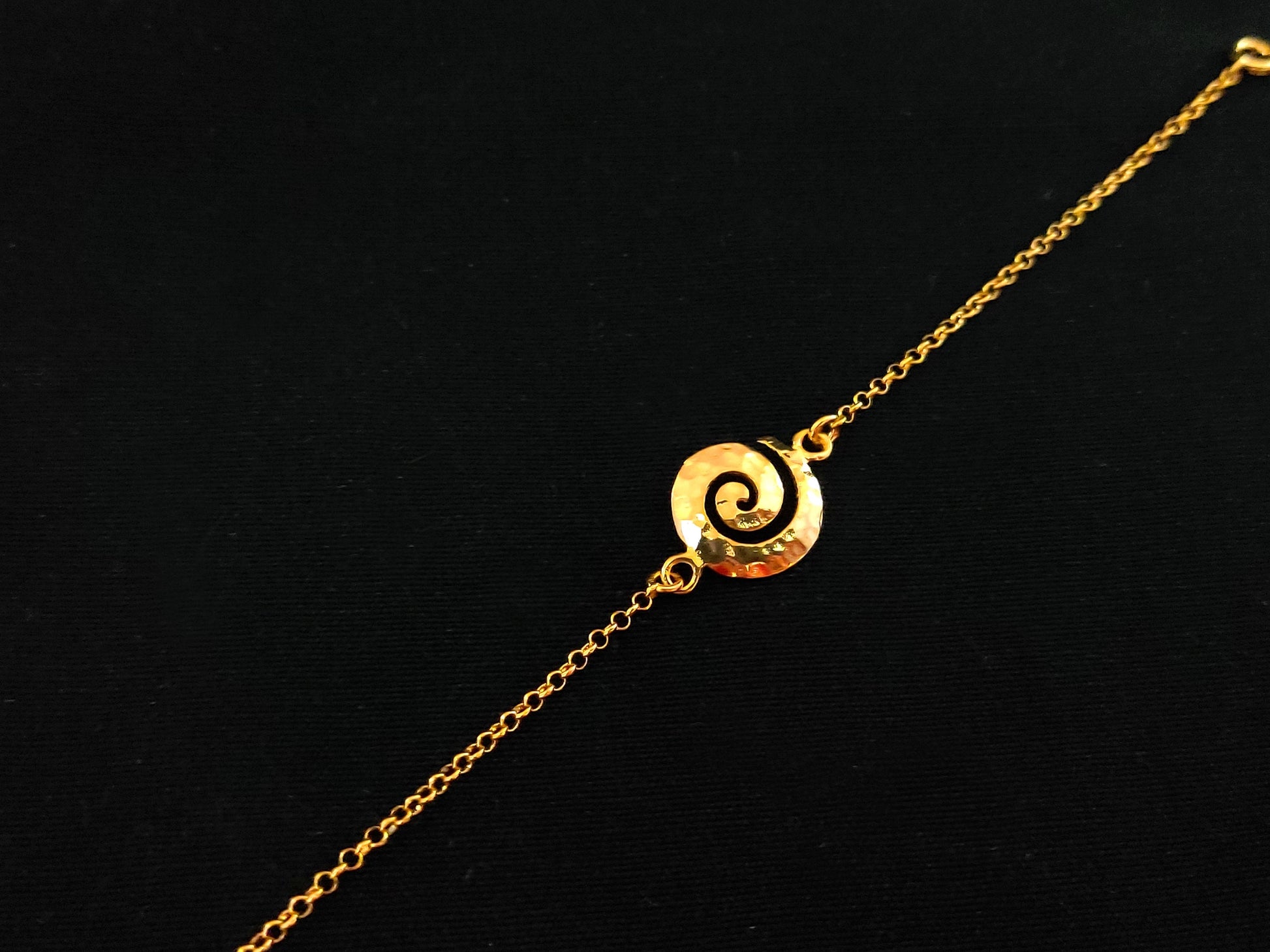 Sterling Silver 925 Ancient Greek Hammered Spiral Circle Of Life Fine Chain Gold Plated Adjustable Bracelet 15mm, Griechischer Armband