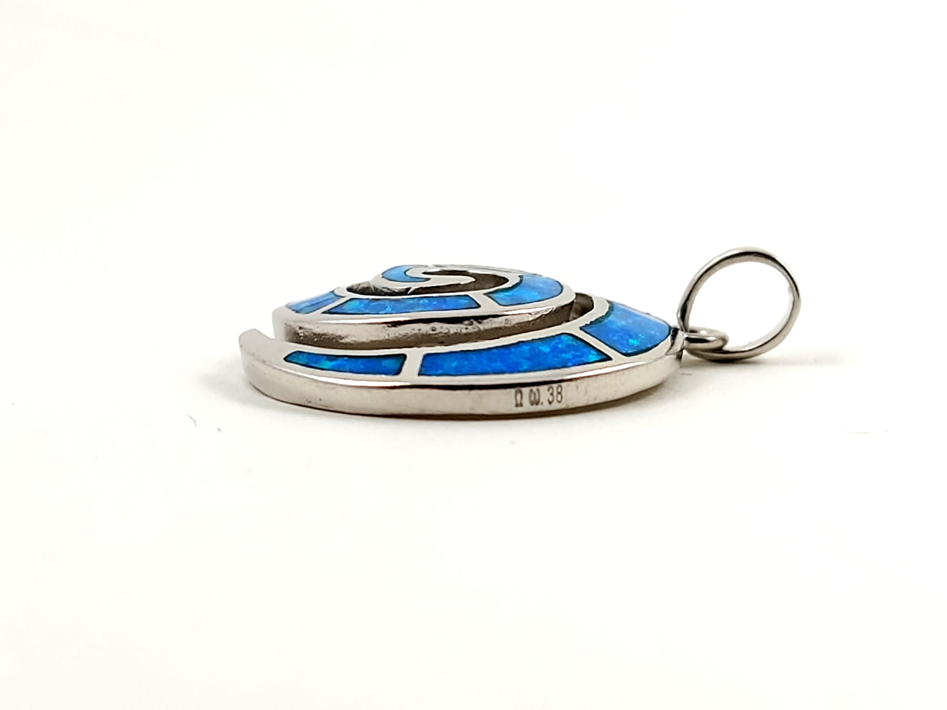 Discover our brand new pendant made in Greece with Sterling Silver 925, Fire Rainbow Blue Opal Stone, and an Ancient Greek Meander Greek Eternity Key design. Measuring 23mm or 0.89 inches in diameter and marked 925, this piece adds timeless beauty to any outfit. Shop now and elevate your style!