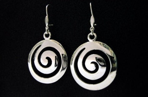 Sterling Silver 925 Ancient Greek Spiral Infinity Key Big Plain Dangle Earrings, Griechische Silber Spiral Ohrringe, Boucles d'oreilles Grec