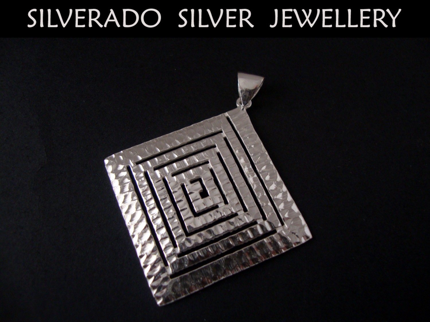 Sterling Silver 925 Pendant Square Hammered Greek Eternity Key 37x37mm, Greek Pendant, Griechische Silber Anhanger Schmuck, Meander Anhanger
