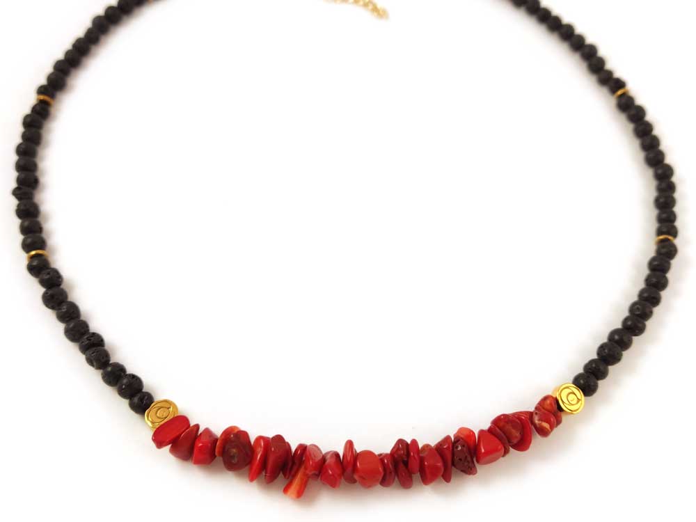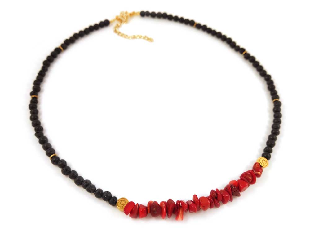 Greek Lava & Red Agate Necklace – Handcrafted in Greece | Free Worldwide Shipping