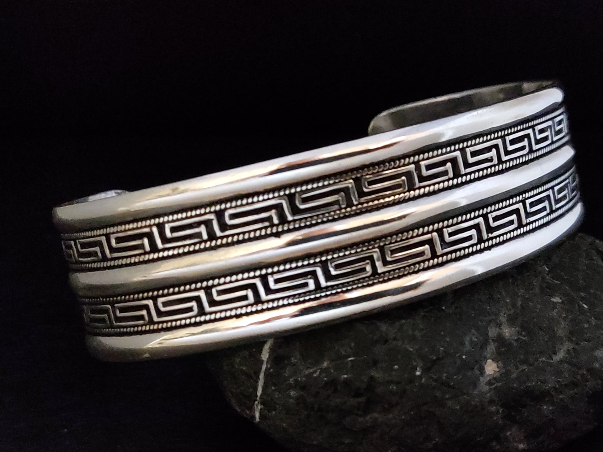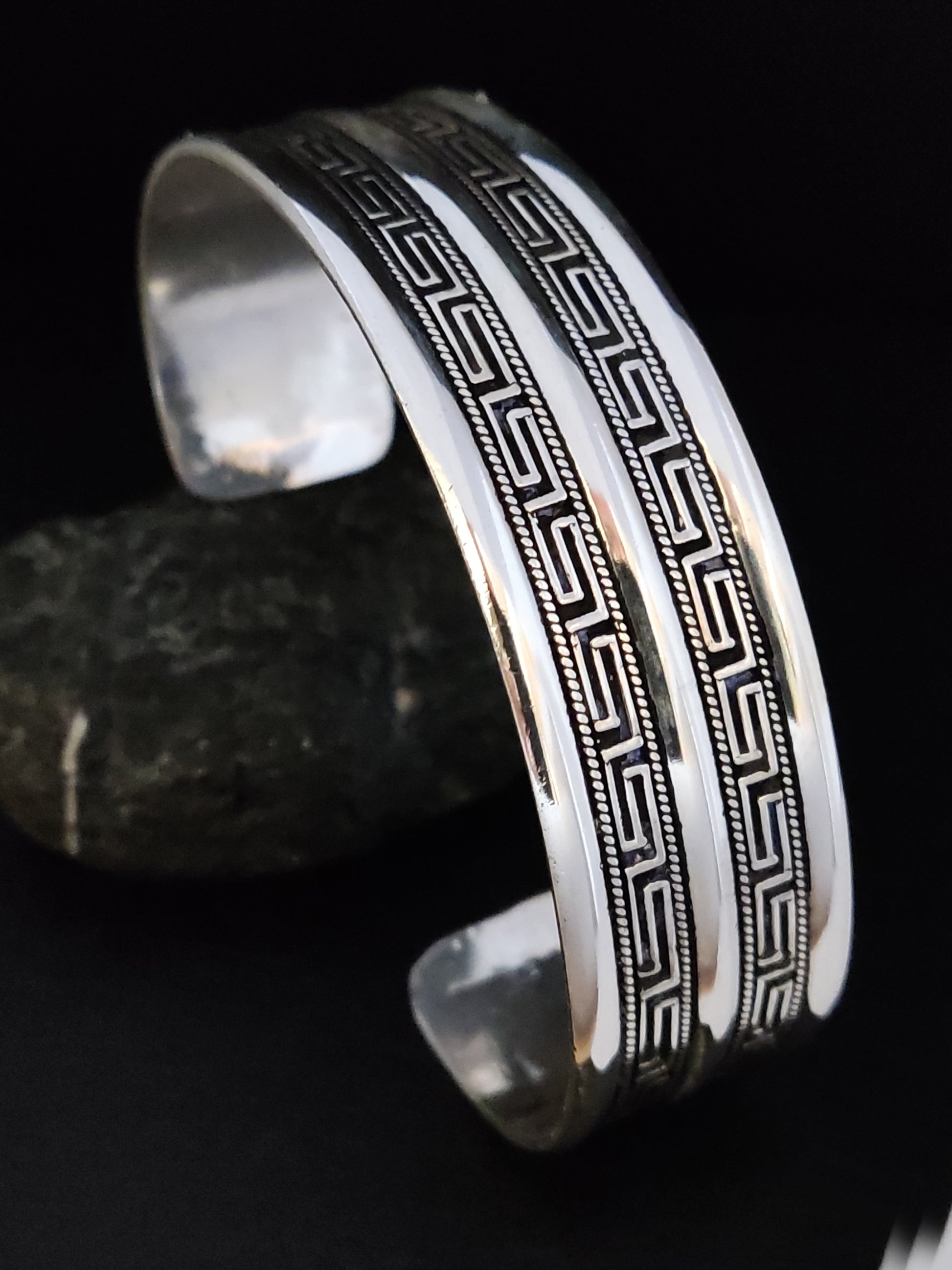 Greek Silver Cuff Wide Adjustable Bracelet 21mm