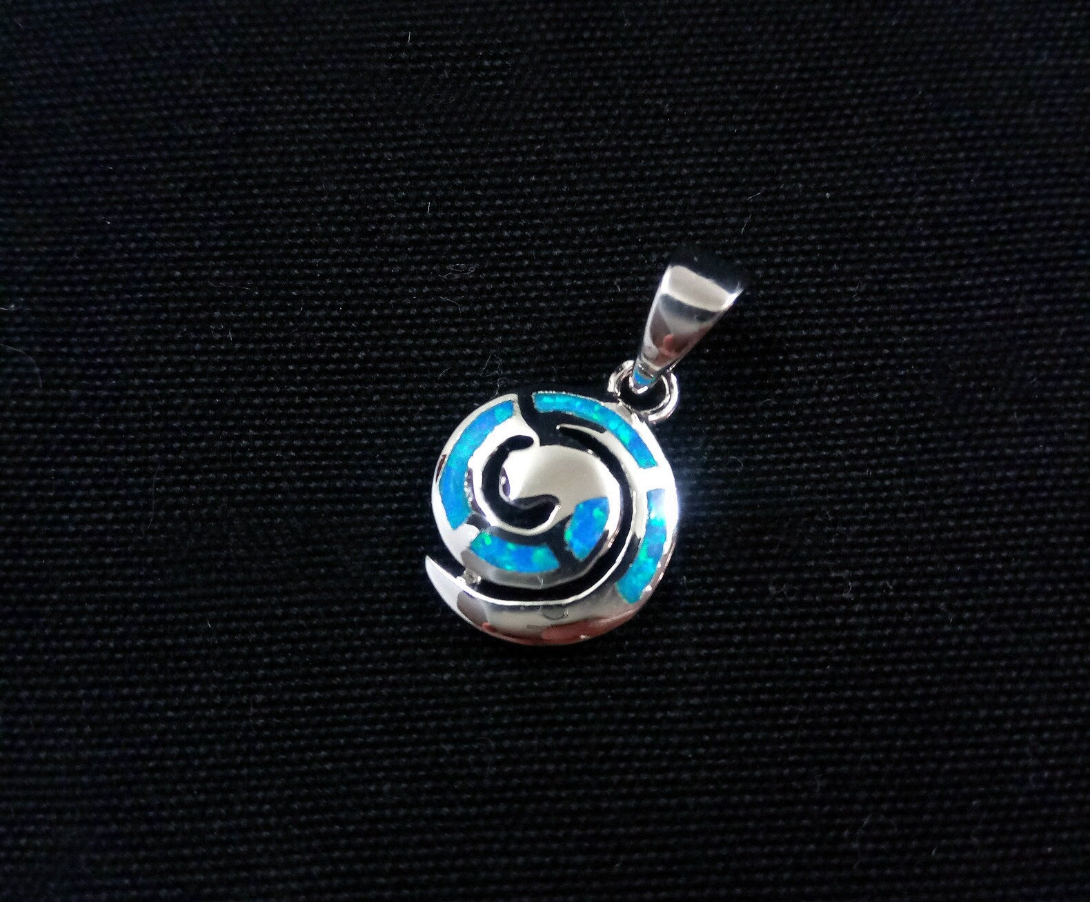 Sterling Silver 925 Fire Rainbow Blue Opal Greek Spiral Small Pendant 11mm, Ancient Greek Spiral Swirl Vortex Opal Pendant, Opal Jewelry