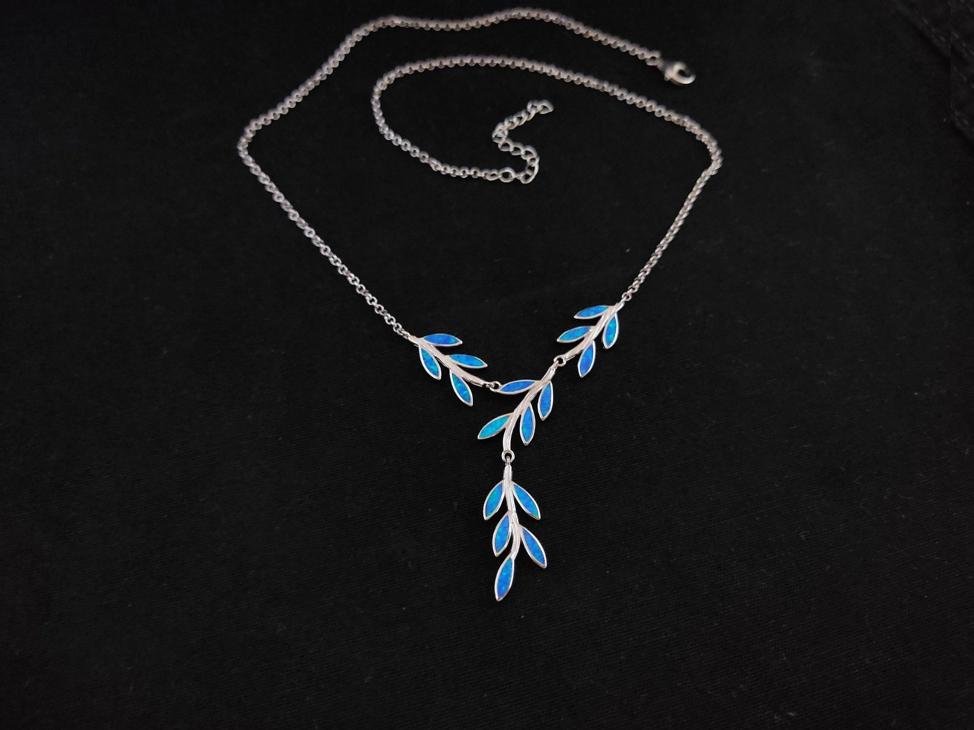 Sterling Silver 925 Fire Rainbow Blue Opal Olive Leaf Leaves Fine Necklace, Athena Necklace, Blau Opal Herz Anhanger, Bijoux Grecque, Heart