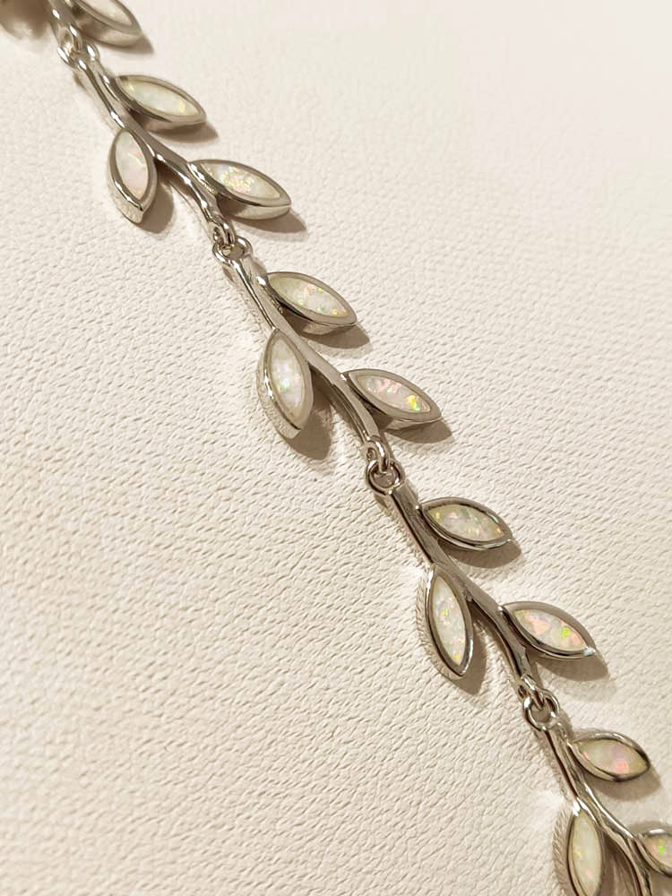 Sterling Silver 925 White Opal Leaf Leaves Adjustable Bracelet
