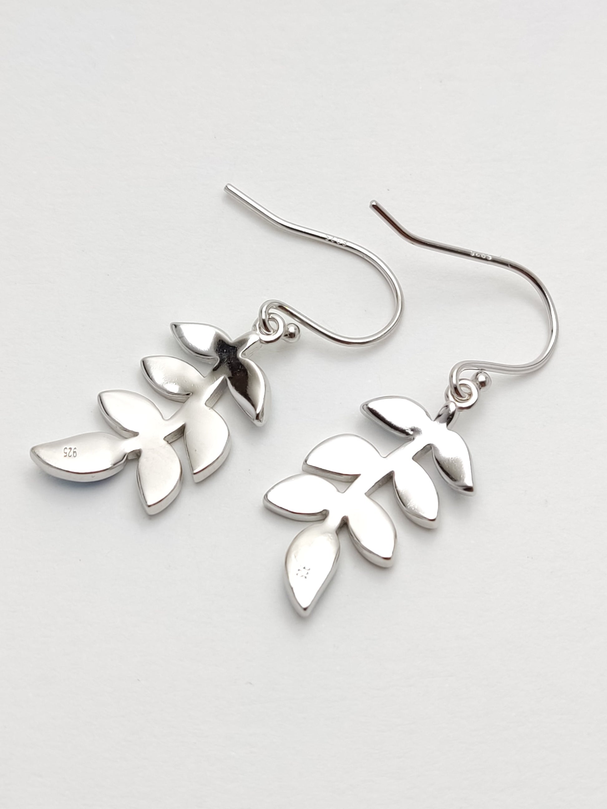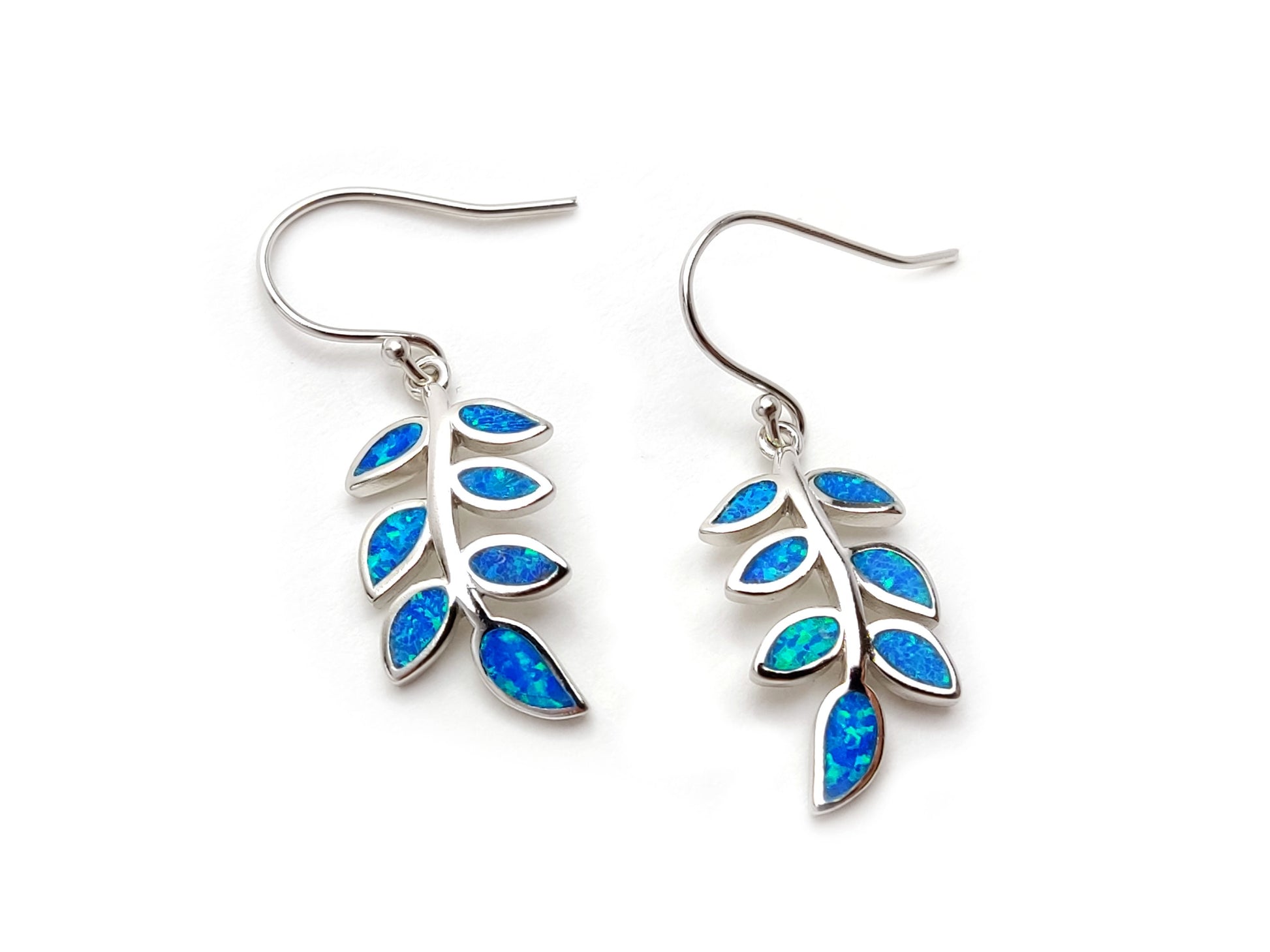 Greek Silver Leaf Leaves Fire Ocean Blue Opal Dangle Earrings, Jewelry From Greece, Griechischer Silber Ohrringe, Bijoux De Grece, 25x12mm