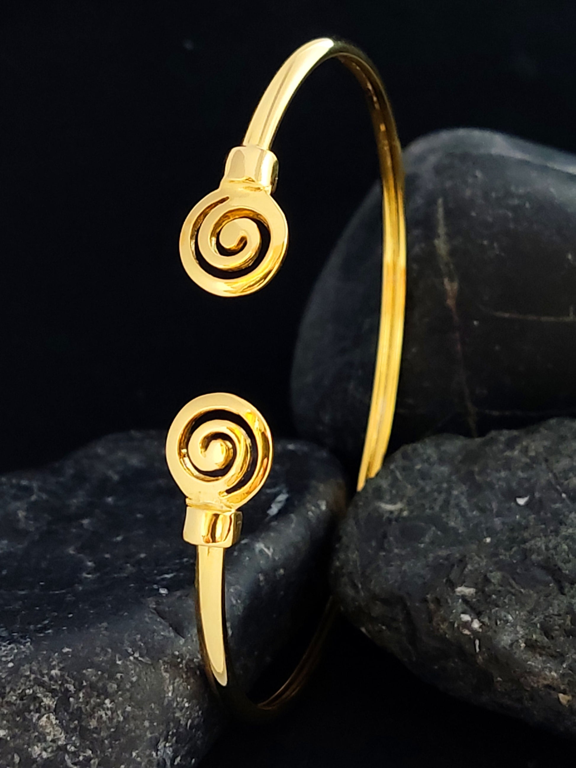 Greek Spiral Bracelet Gold Plated Cuff 10mm