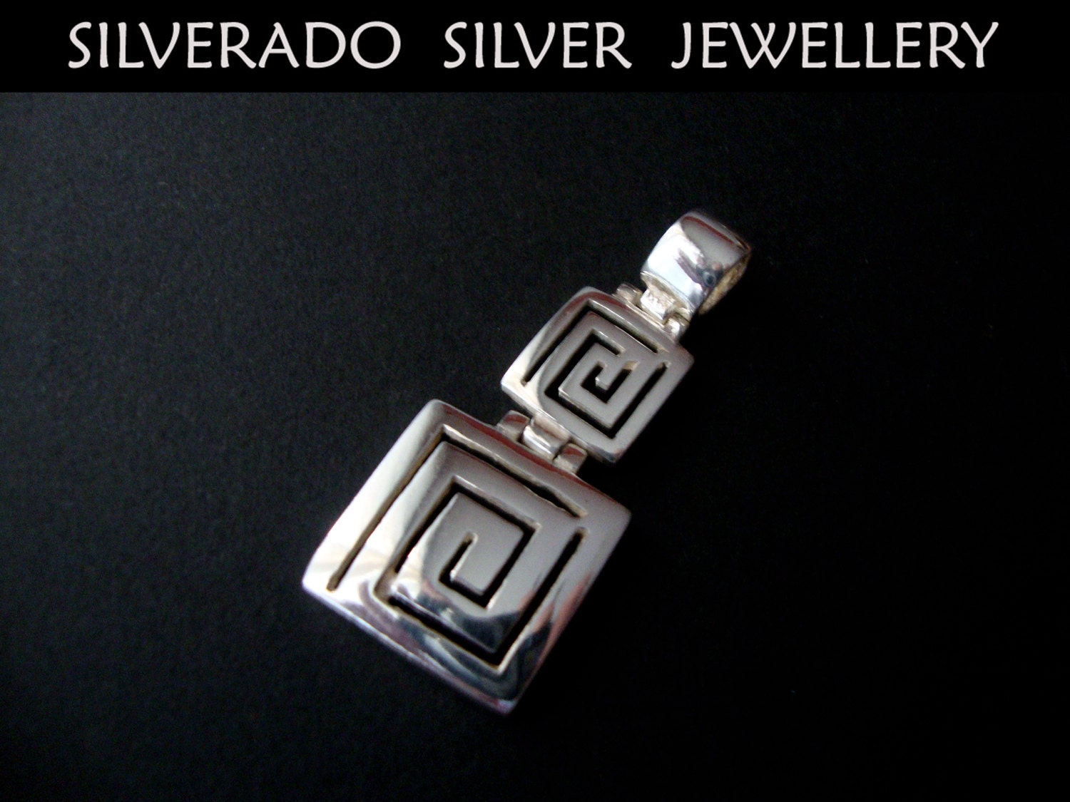 Sterling Silver 925 Ancient Greek Double Square Eternity Meander Key Pendant
