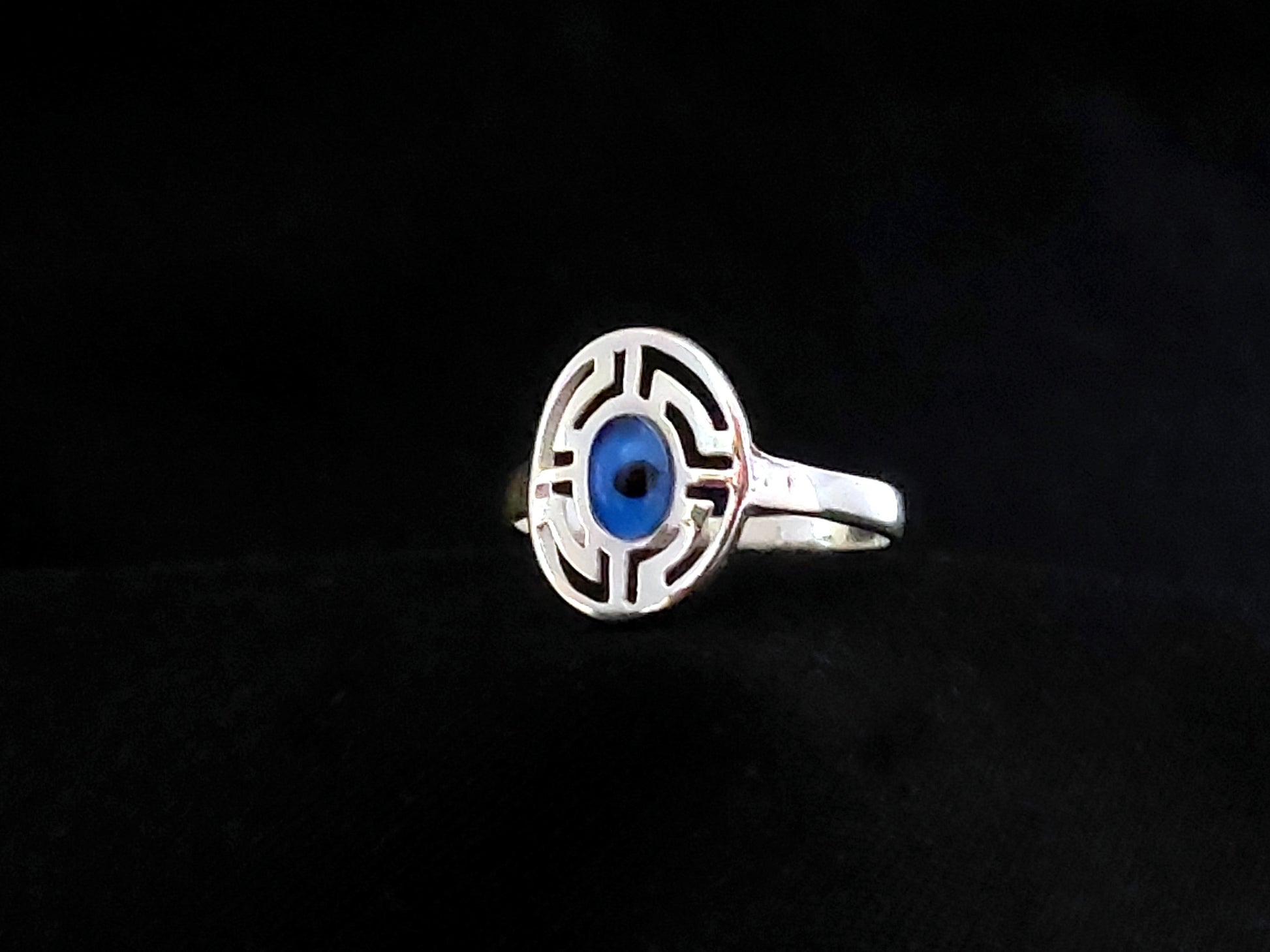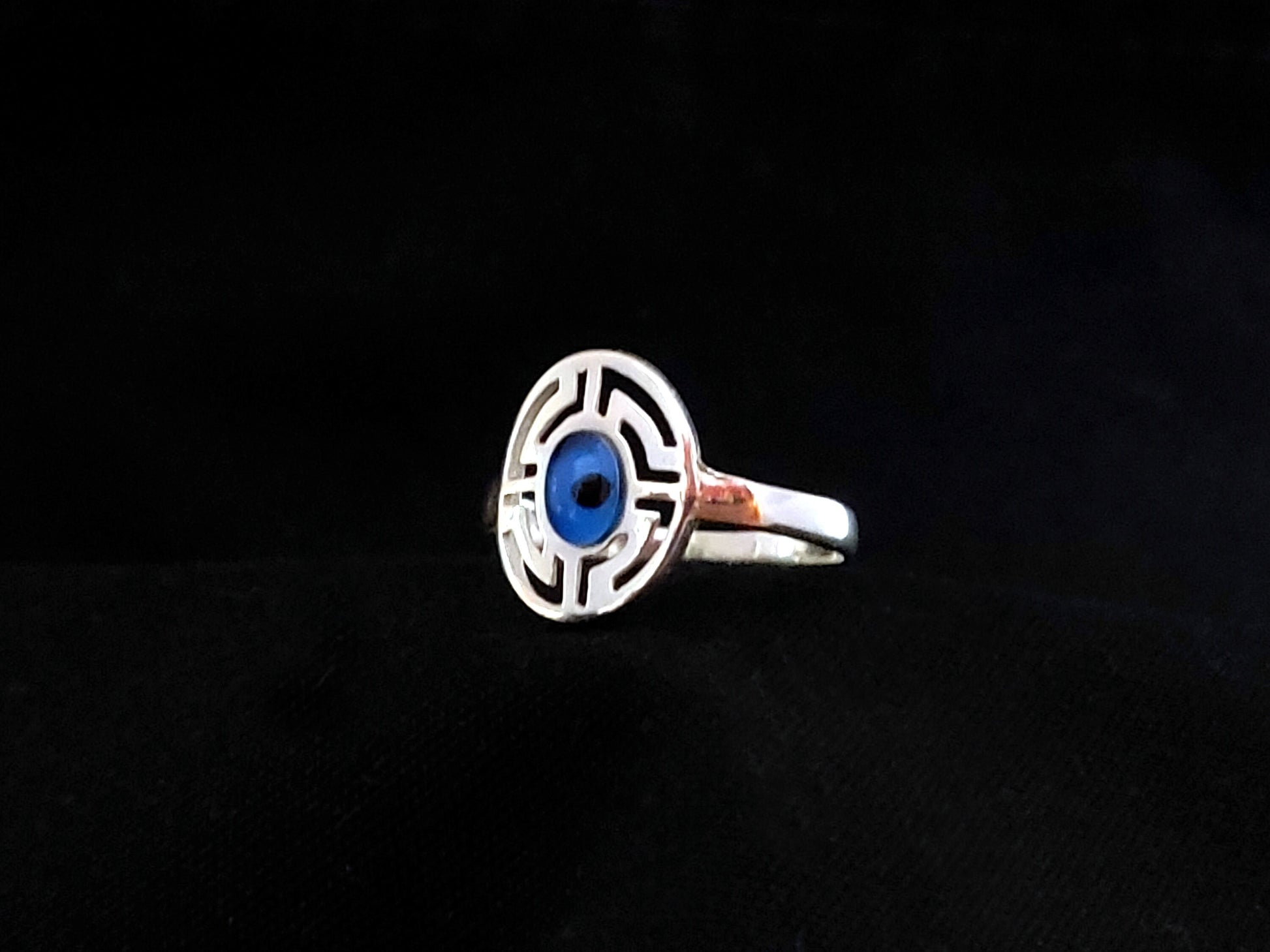 Sterling Silver 925 Ancient Greek Meander Blue Evil Eye Mati Oval Ring , Greek Jewelry, Griechische Silber Schmuck, Bague Grecque, Evil Eye