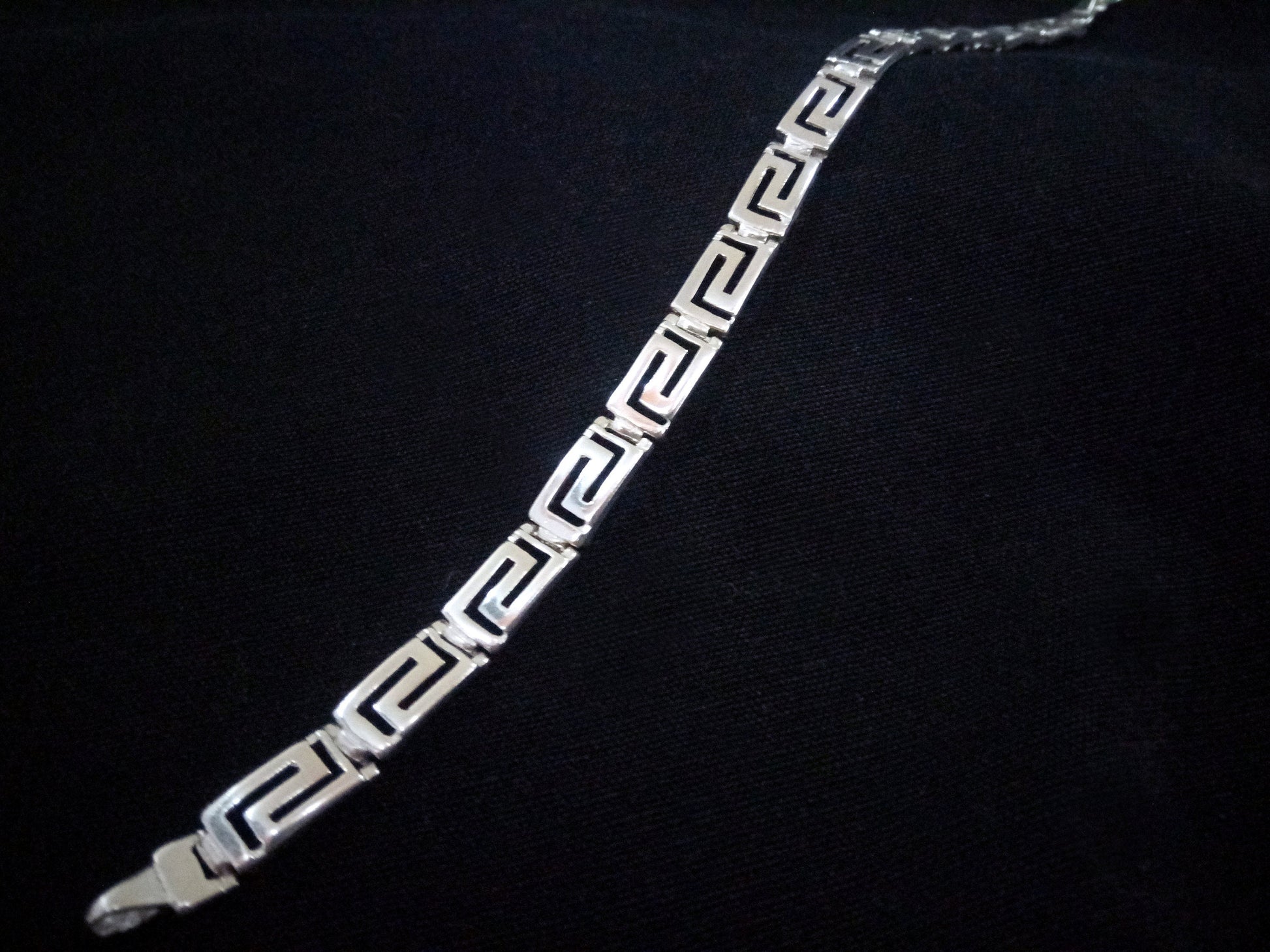 Sterling Silver 925 Ancient Greek Meander Long Key Silver Greek Bracelet 6mm, Greek Jewelry, Griechische Silber Armband, Bracelet Grecque