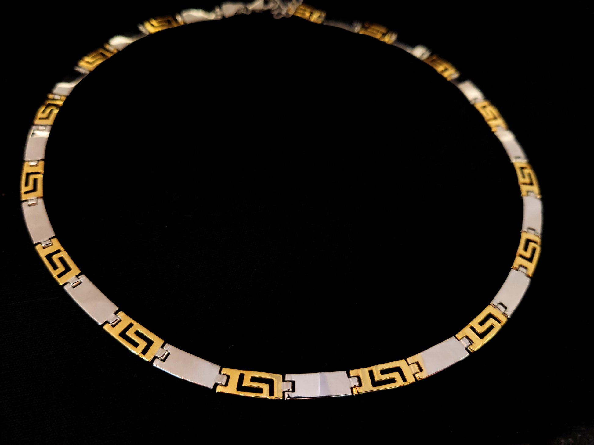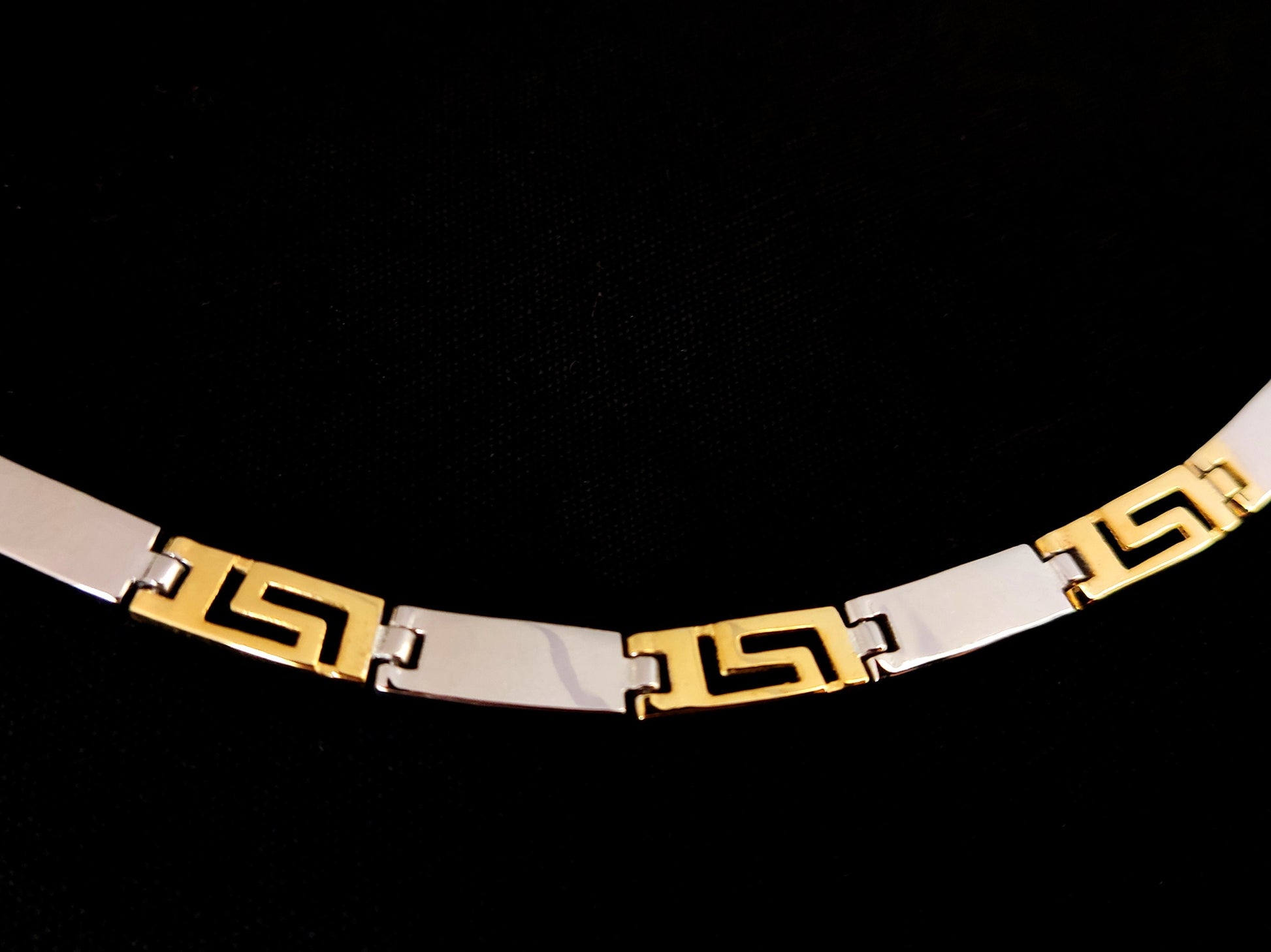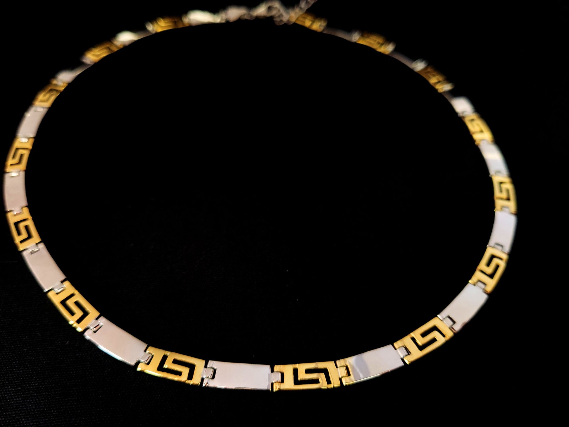 Sterling Silver 925 Bicolor Greek Key Meander Design Gold Plated Modern Necklace, Griechischer Silber Vergoldet Kette, Greek Jewelry Shop