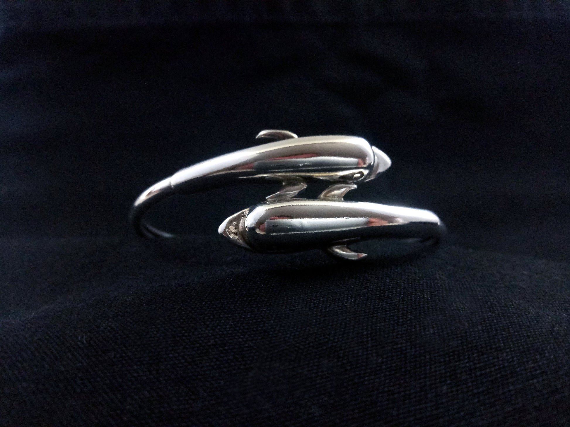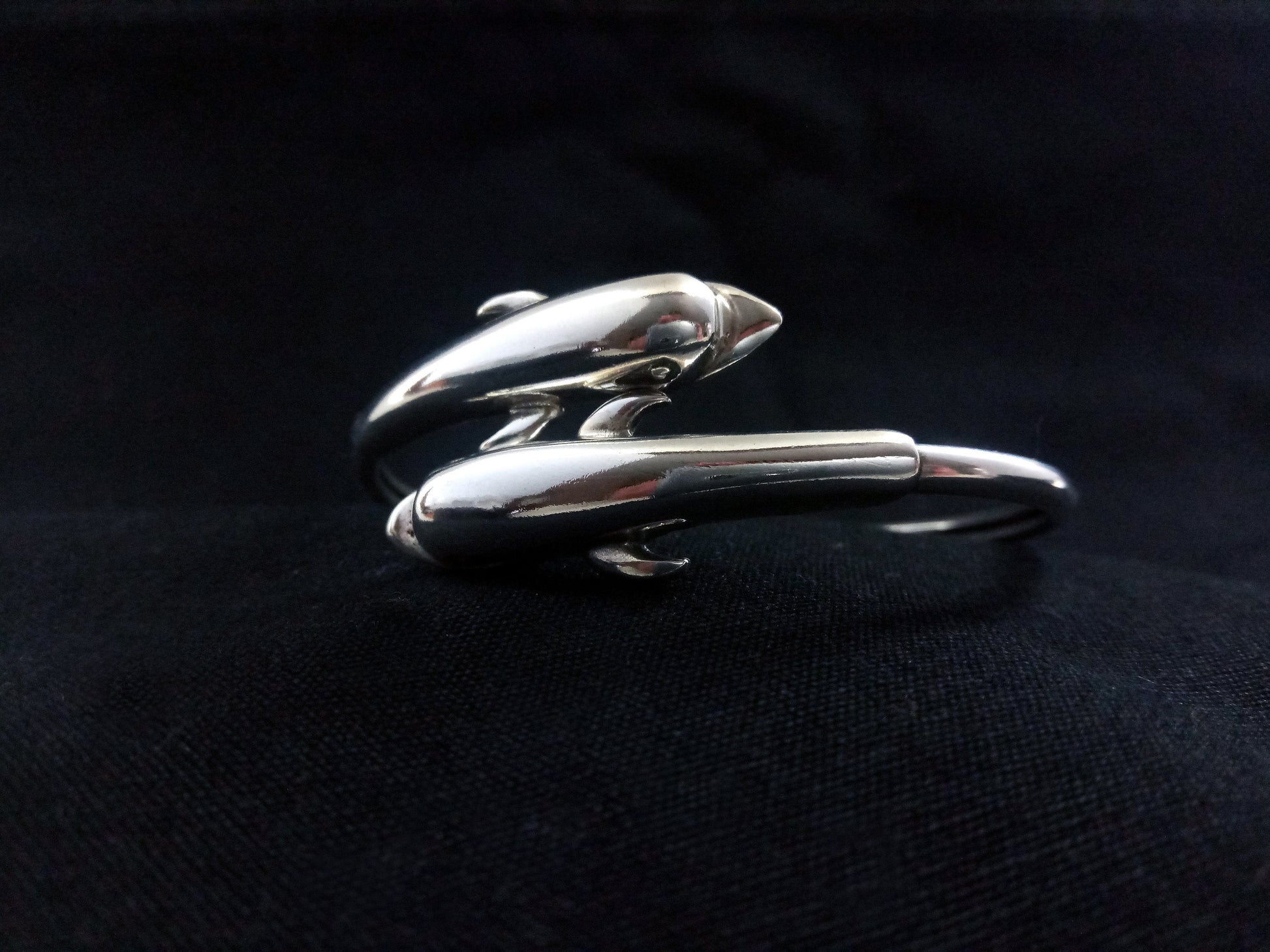Sterling Silver 925 Dolphin Double Head Greek Bangle Bracelet, Dolphin Head Silver Bracelet, Greek Jewelry, Griechischer Armreif, Dolphin