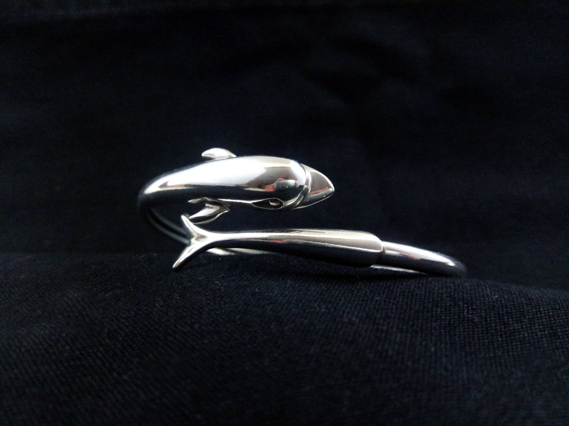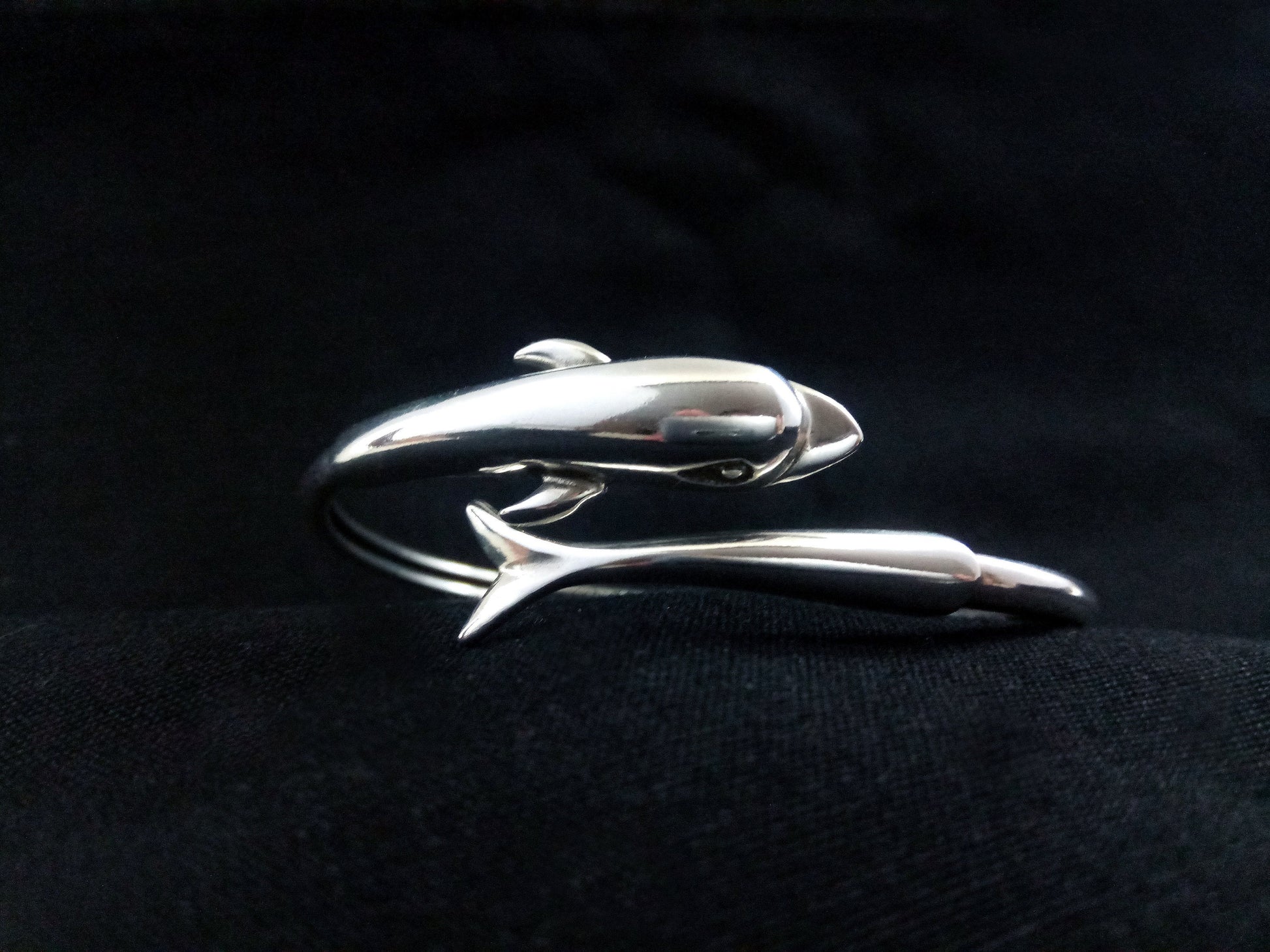 Sterling Silver 925 Dolphin Head Tail Greek Cuff bangle Bracelet, Dolphin Head Silver Bracelet, Greek Jewelry, Griechischer Armreif, Dolphin