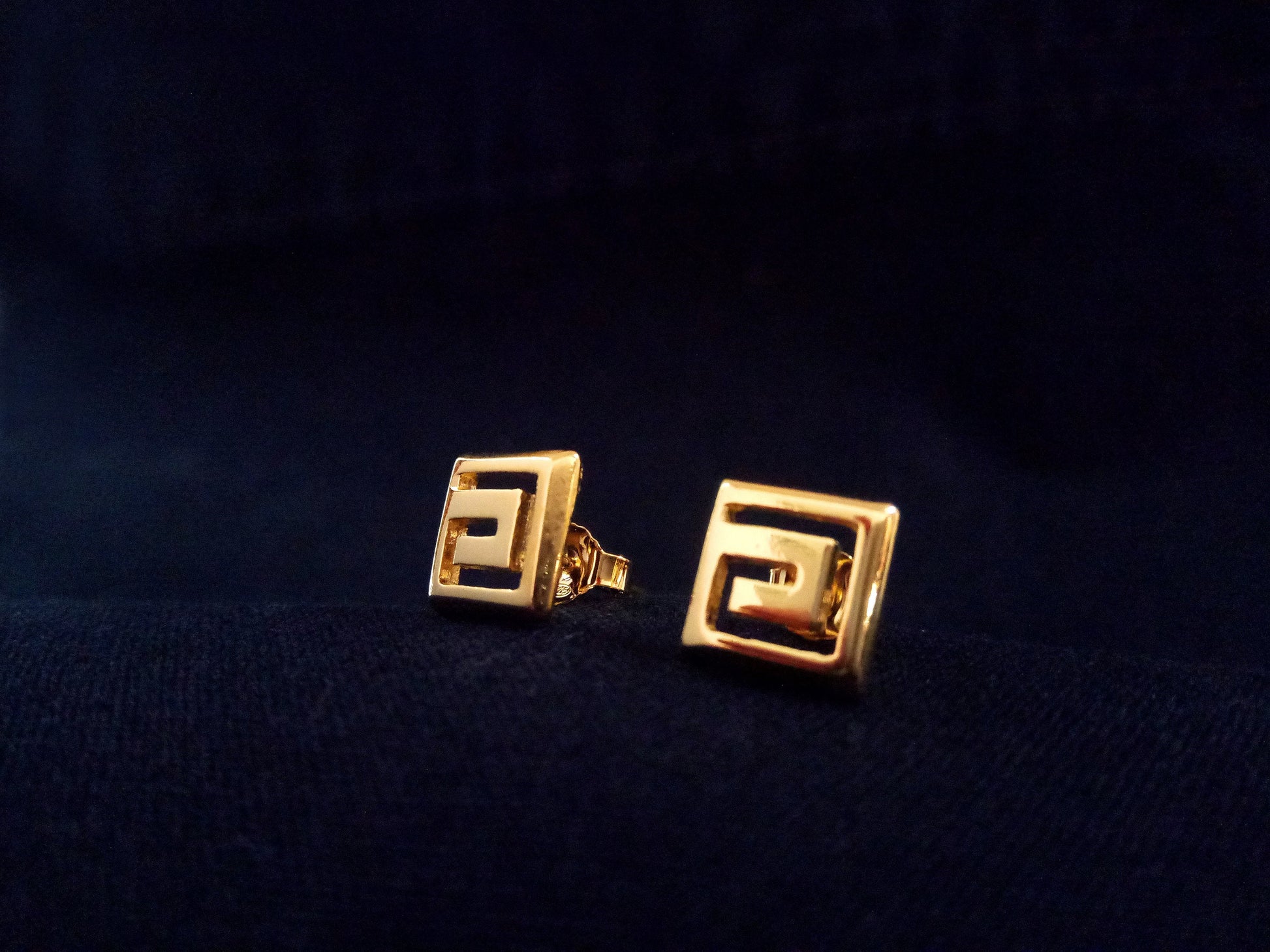 Sterling Silver 925 Stud Meander Greek Small Gold Plated 22K Earrings 7mm, Greek Key Stud Earrings, Griechisches Silber Ohrringe, Grecque