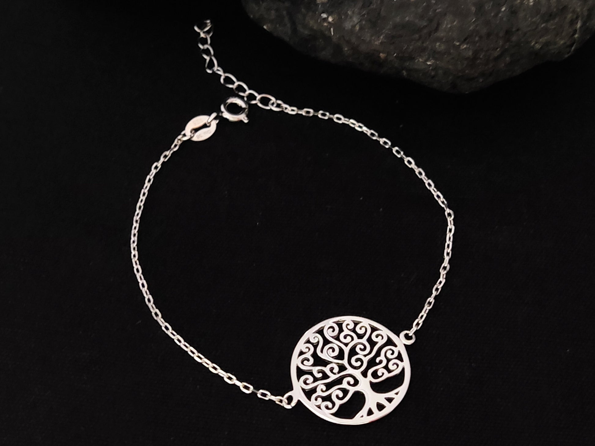 Sterling Silver 925 Tree Of Life 18mm Fine Chain Adjustable Minimalist Jewelry Greek Bracelet , Griechischer Silber Armband, Bijoux Grece
