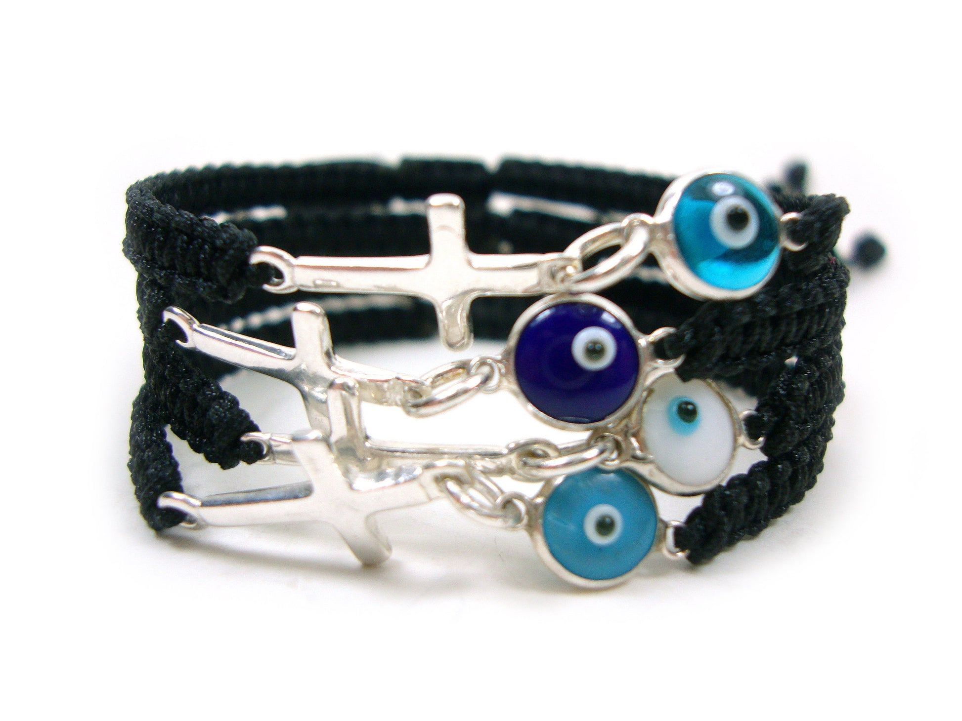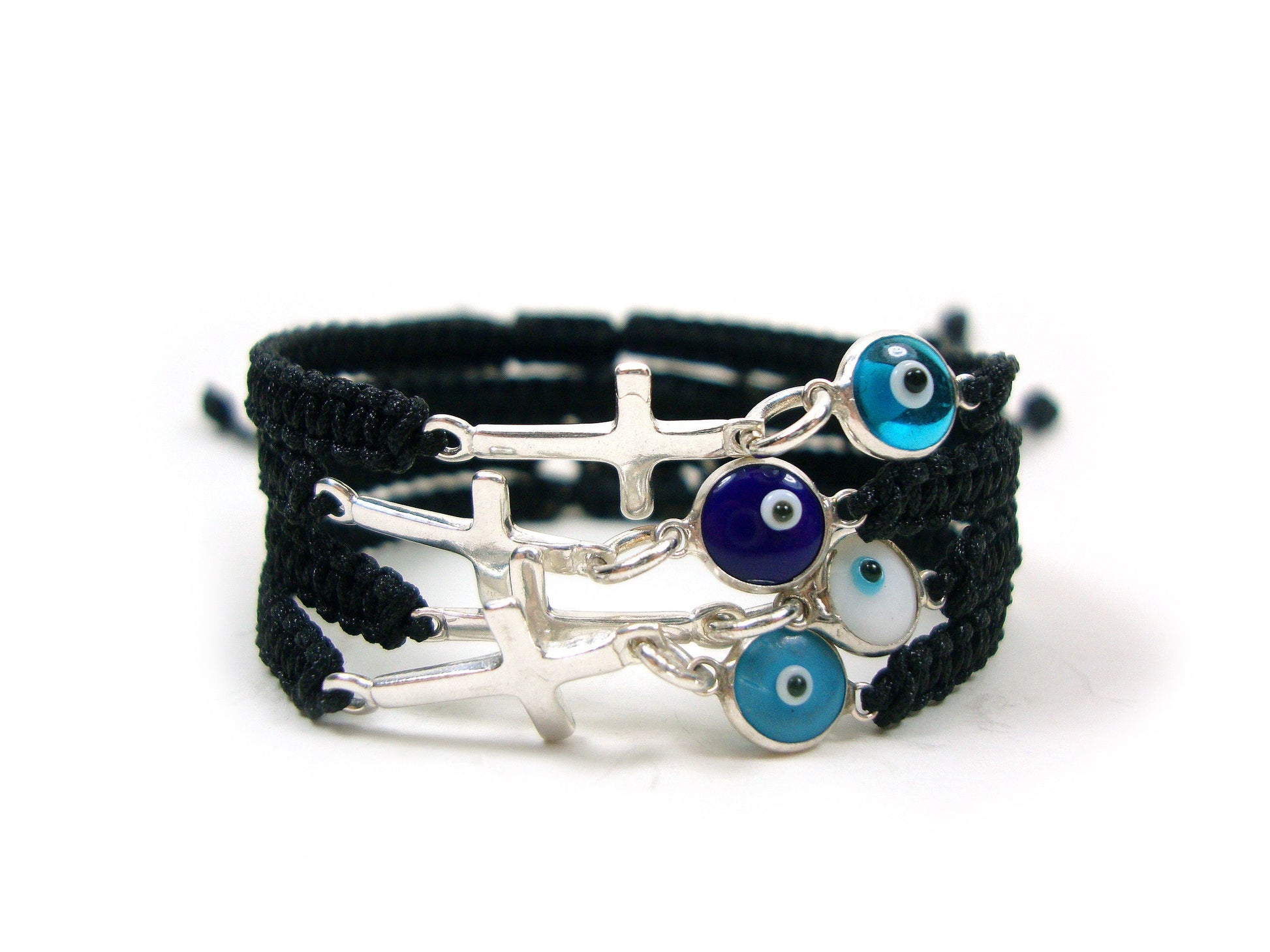 Evil Eye Bracelets, Good Luck 7mm - Cross Handmade Adjustable Macrame Bracelet , Griechische Silber Armband, Bijoux Grecque