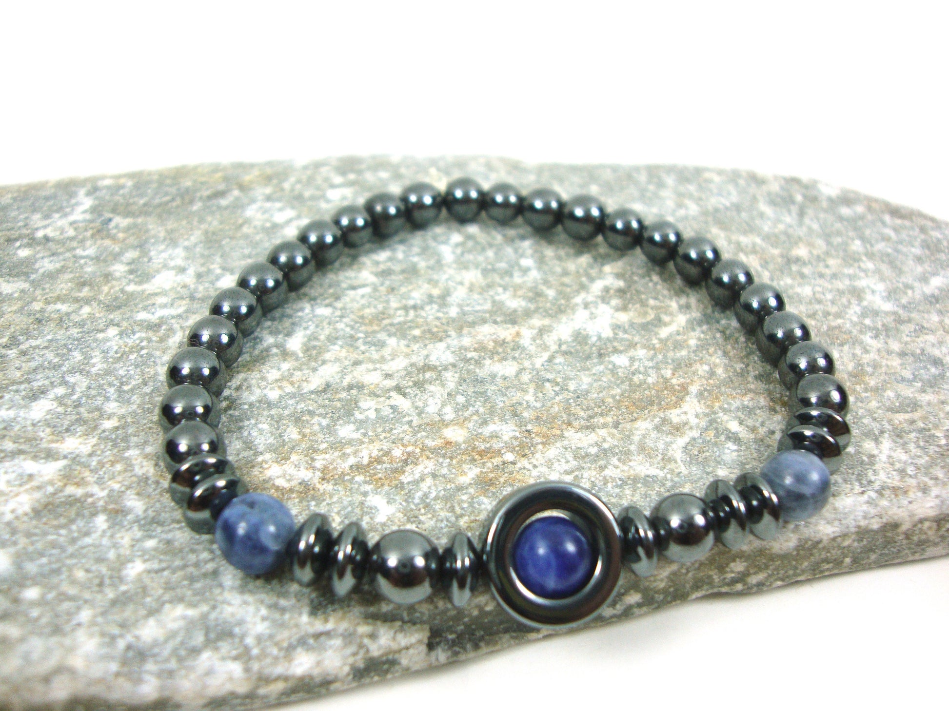 Hématite naturelle - Bracelet Sodalite Stones 6 mm, Bracelet Hématite, Bracelet Sodalite, Bijoux Hématite, Bracelet grec Sodalite Hématite