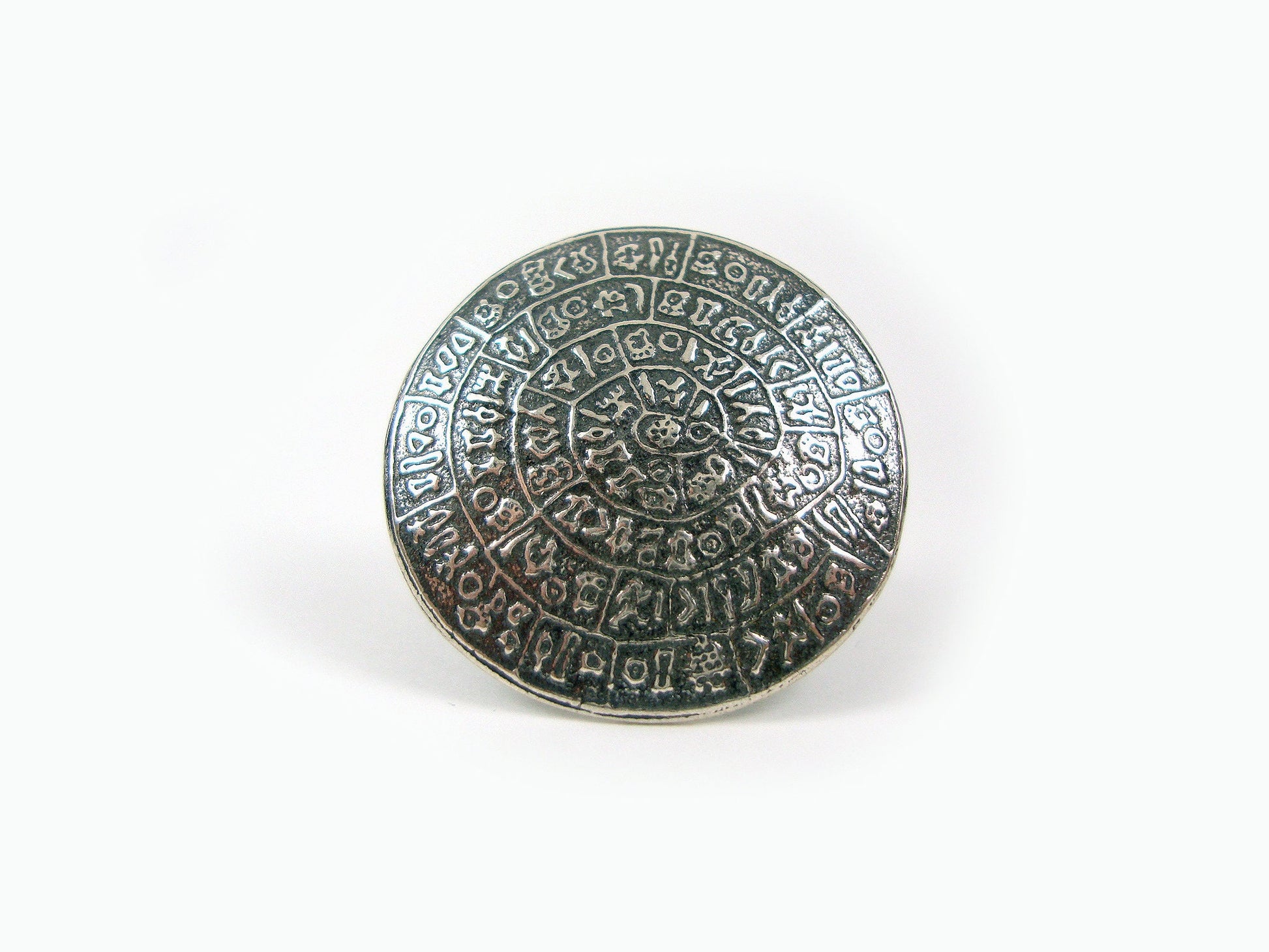 Le disque a été découvert en 1908 par l'archéologue italien Luigi Pernier sur le site du palais minoen de Phaistos et contient 241 jetons, comprenant 45 signes uniques, qui ont apparemment été fabriqués en pressant des « sceaux » hiéroglyphiques préformés dans un disque d'argile molle. , dans une séquence dans le sens des aiguilles d'une montre en spirale vers le centre du disque.