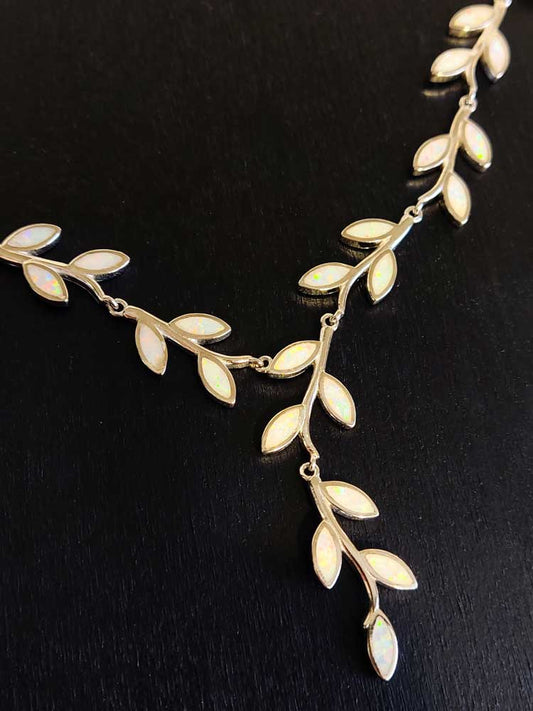 Sterling Silver 925 White Opal Leaf Leaves Necklace