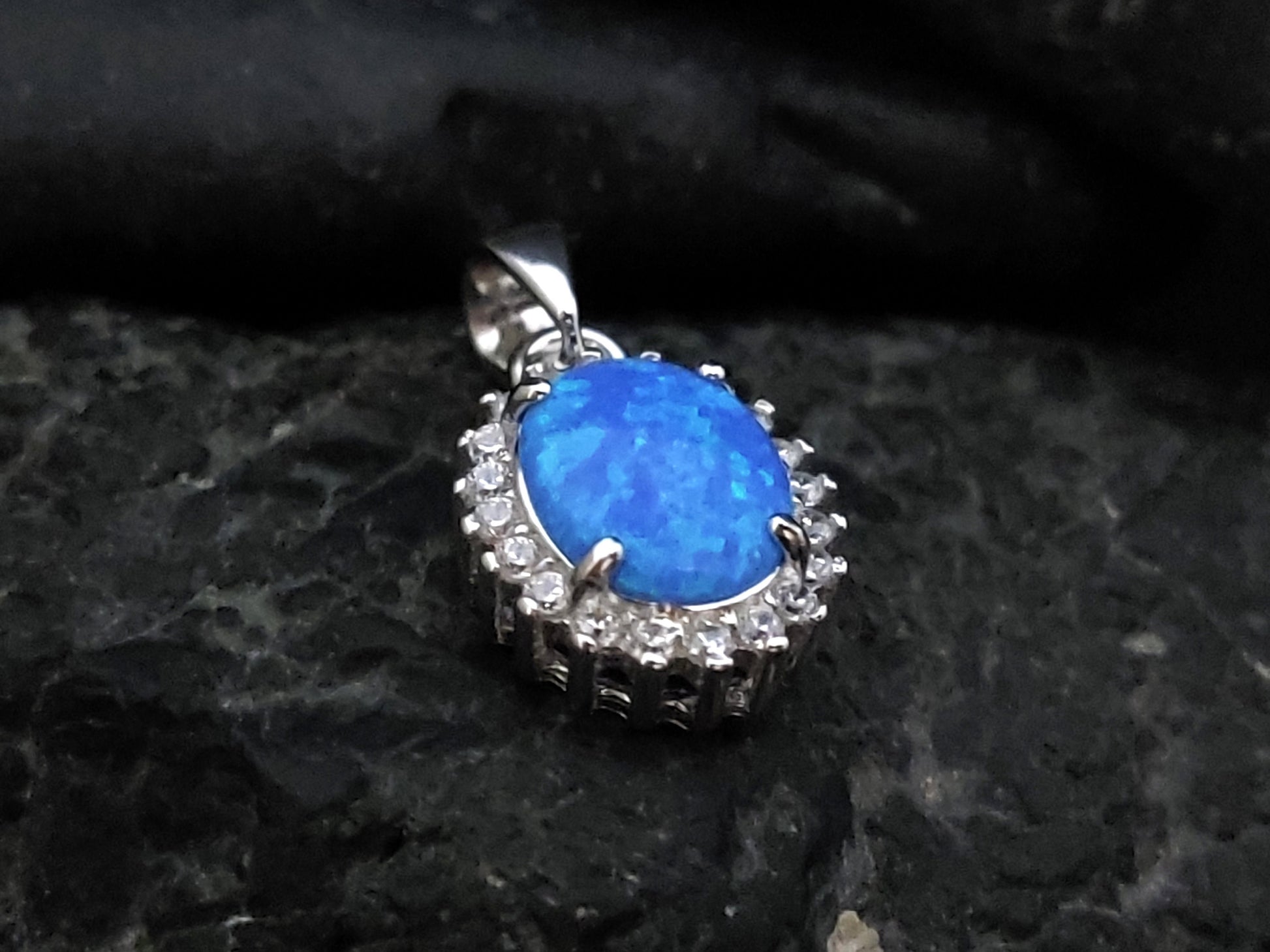 Sterling Silver 925 Oval Rosetta Blue Opal Small Modern Pendant 12x10mm, Opal Crystals Pendant, Griechisches Silber Anhanger, Bijoux Grecque