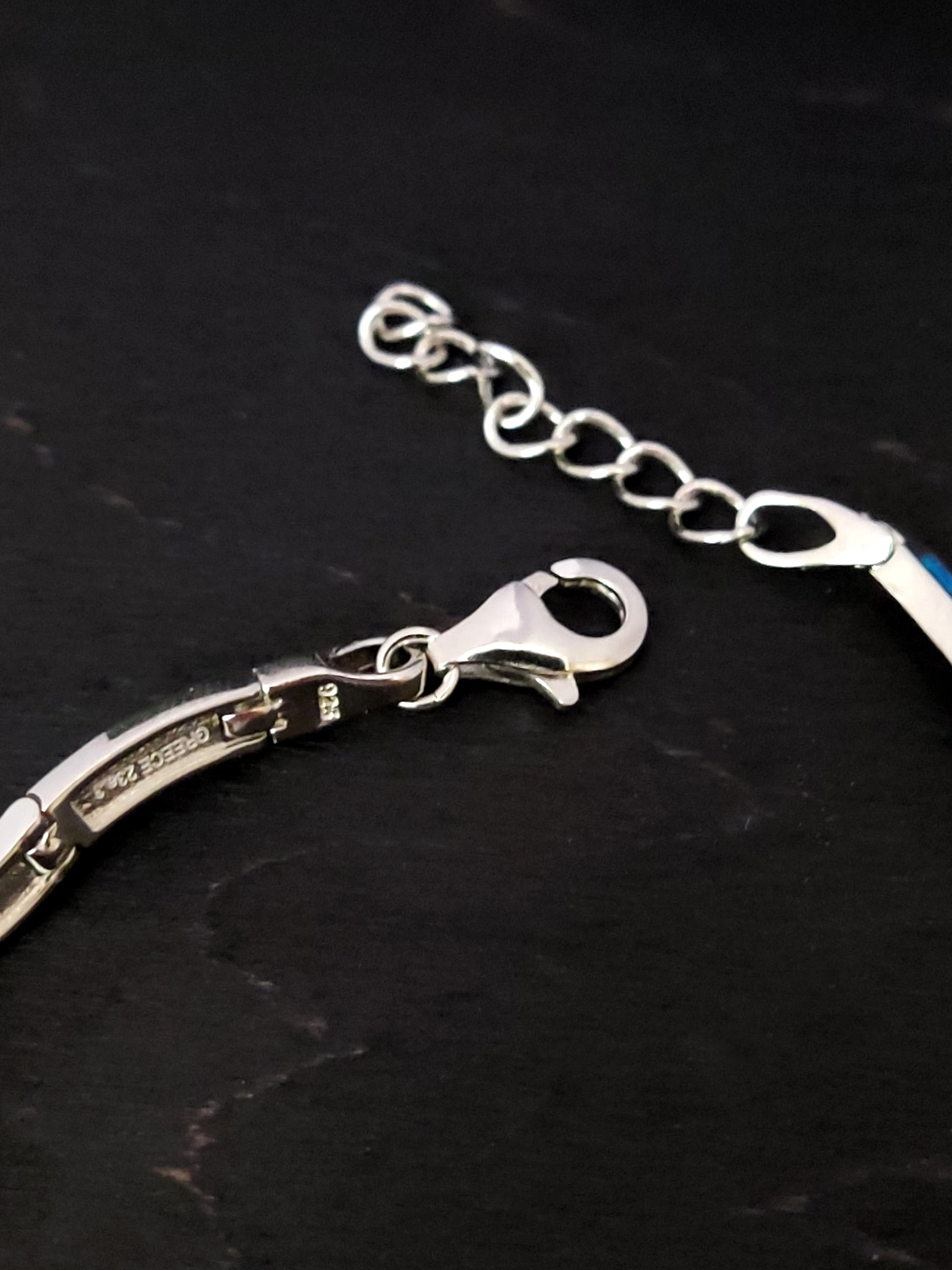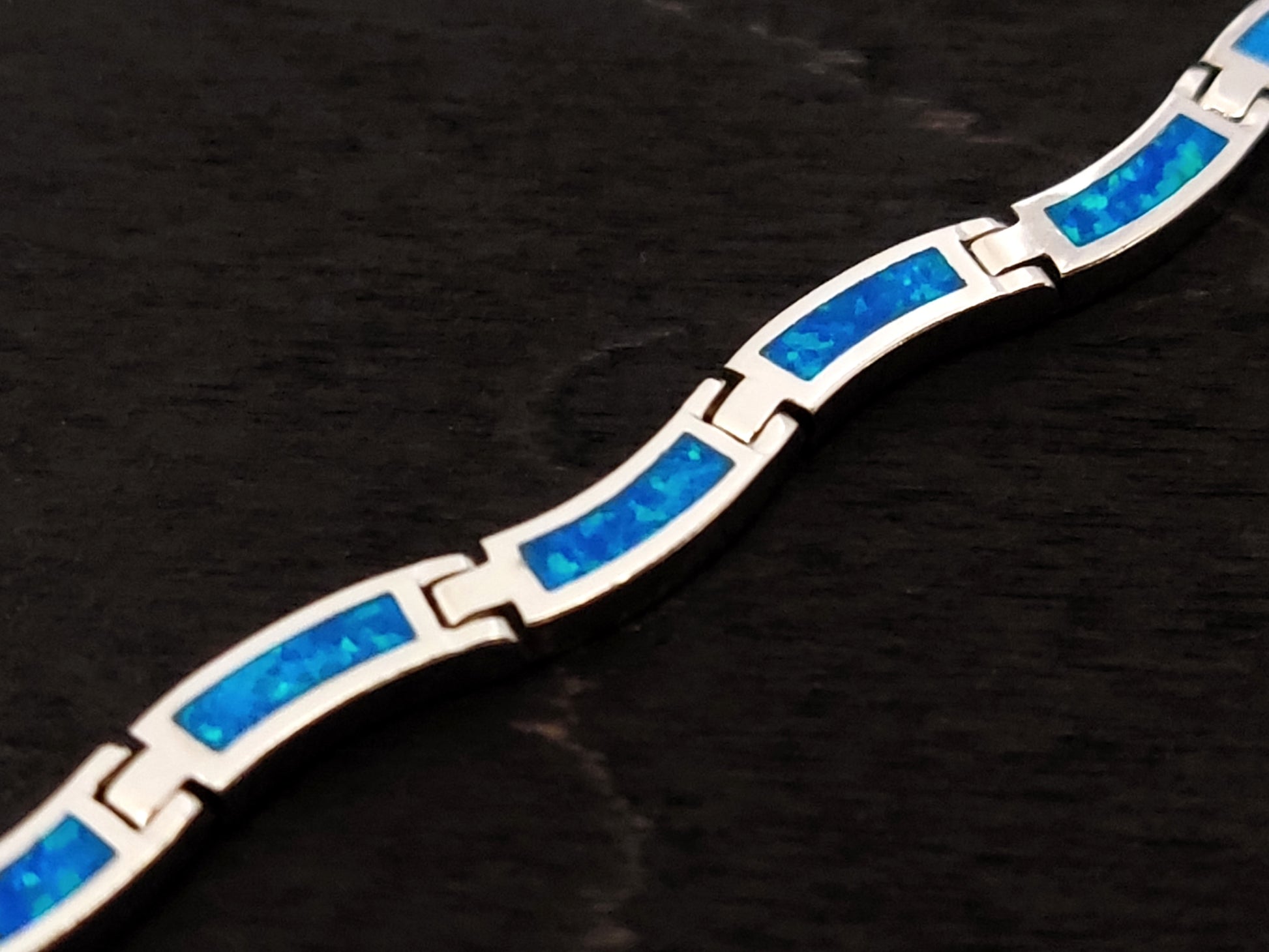 Blue Opal Wave Design Silver Greek Bracelet 3mm