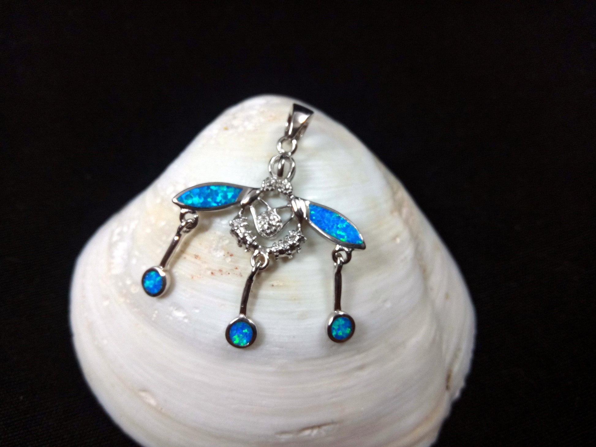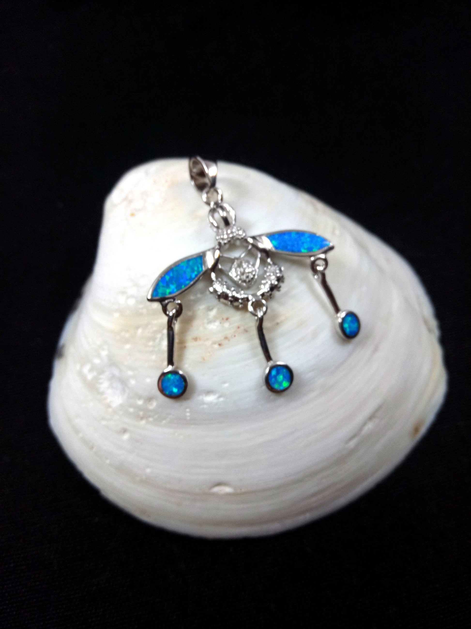 Greek Crete Minoan Blue Opal Malia Bees Silver Pendant 28x29mm