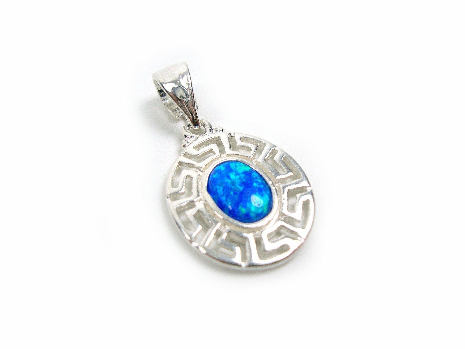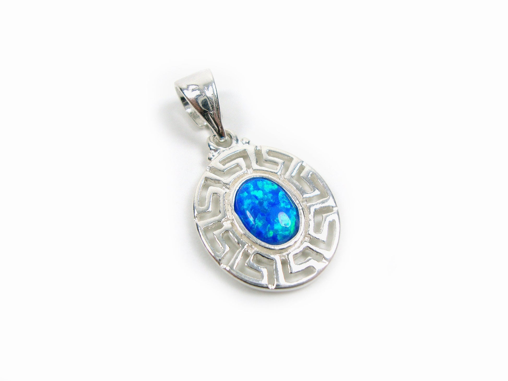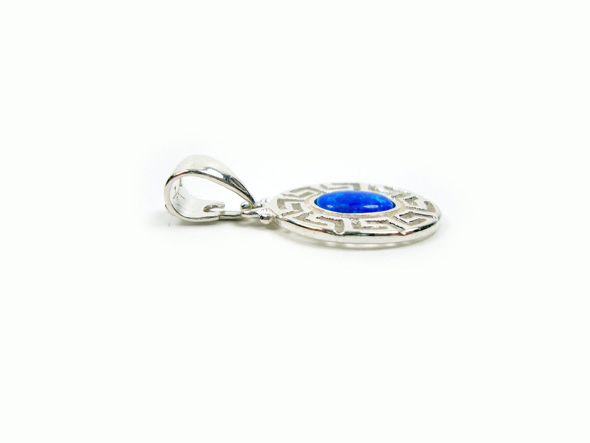 Sterling Silver 925 Greek Fire Rainbow Opal Pendant , Oval Greek Eternity Key 15x18 mm , Greek Jewelry , Griechischer Anhänger Schmuck