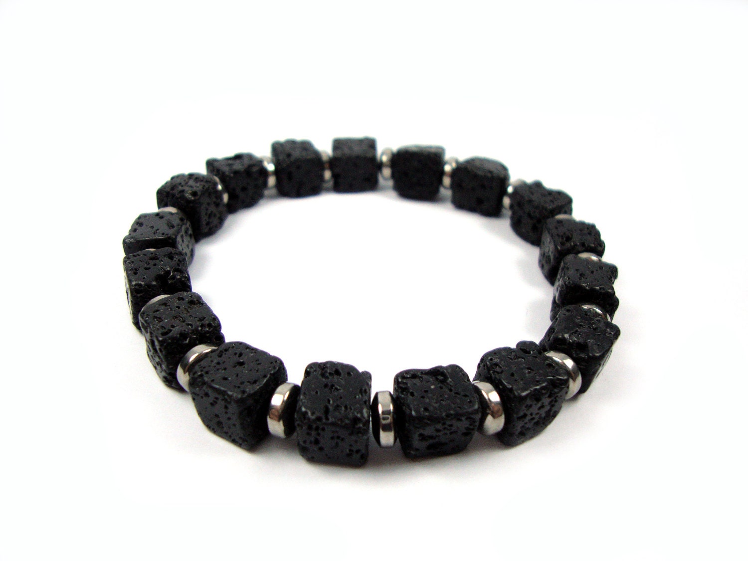 Santorini Natural Black Volcanic Cube Lava 8x8mm Handmade Men Women Unisex Bracelet