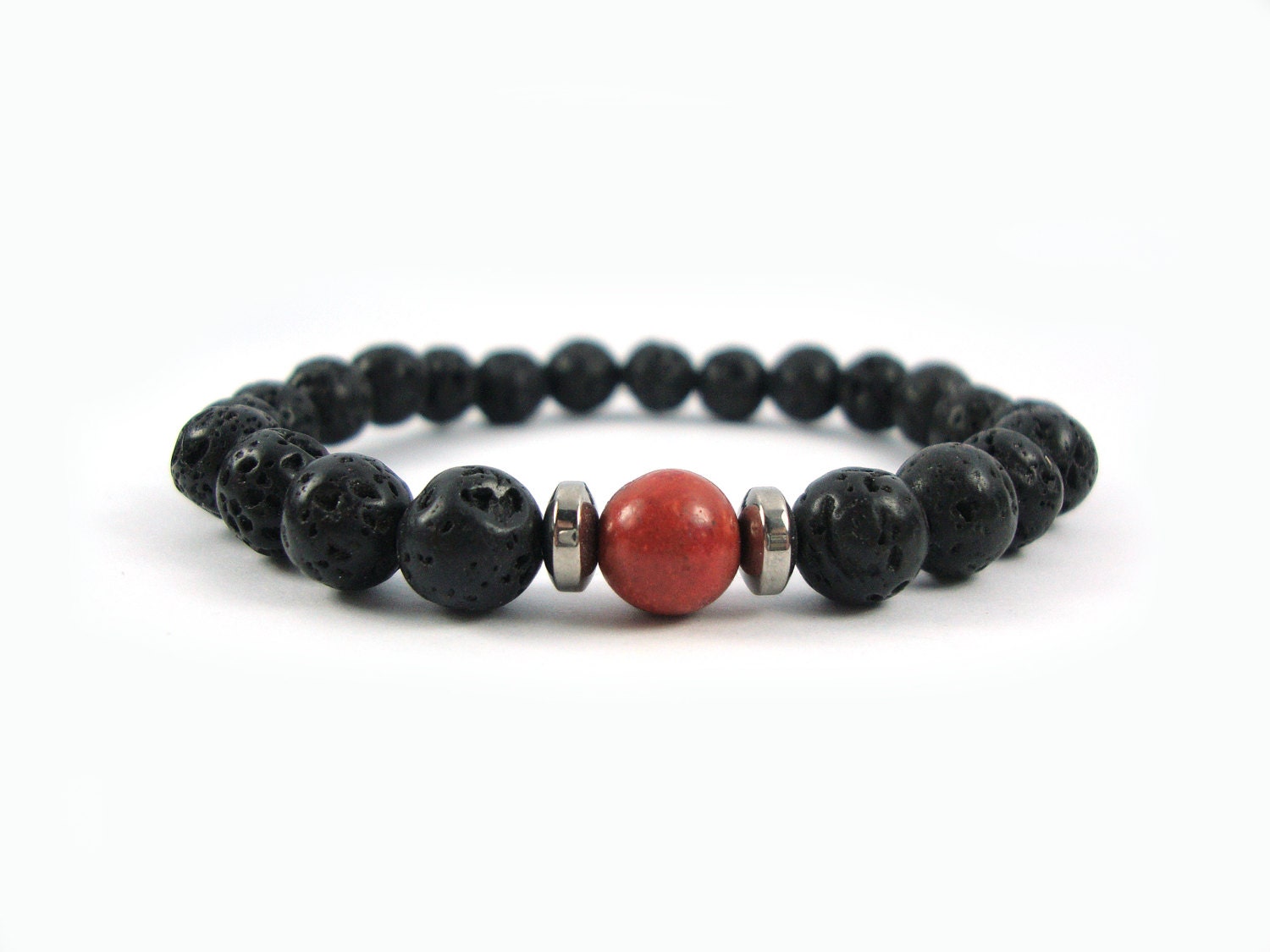 Santorini Natural Black Volcanic Lava 8mm Coral 8mm Handmade Greek Men Women Unisex Bracelet