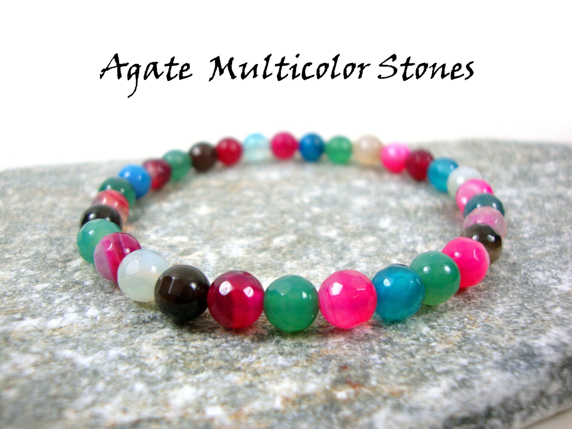 Natural Agate Multicolor Stones Bracelet, Agate Bracelet, Gemstone Bracelet, Natural Stones Men Women Bracelet, Agate Natur Stein Armband