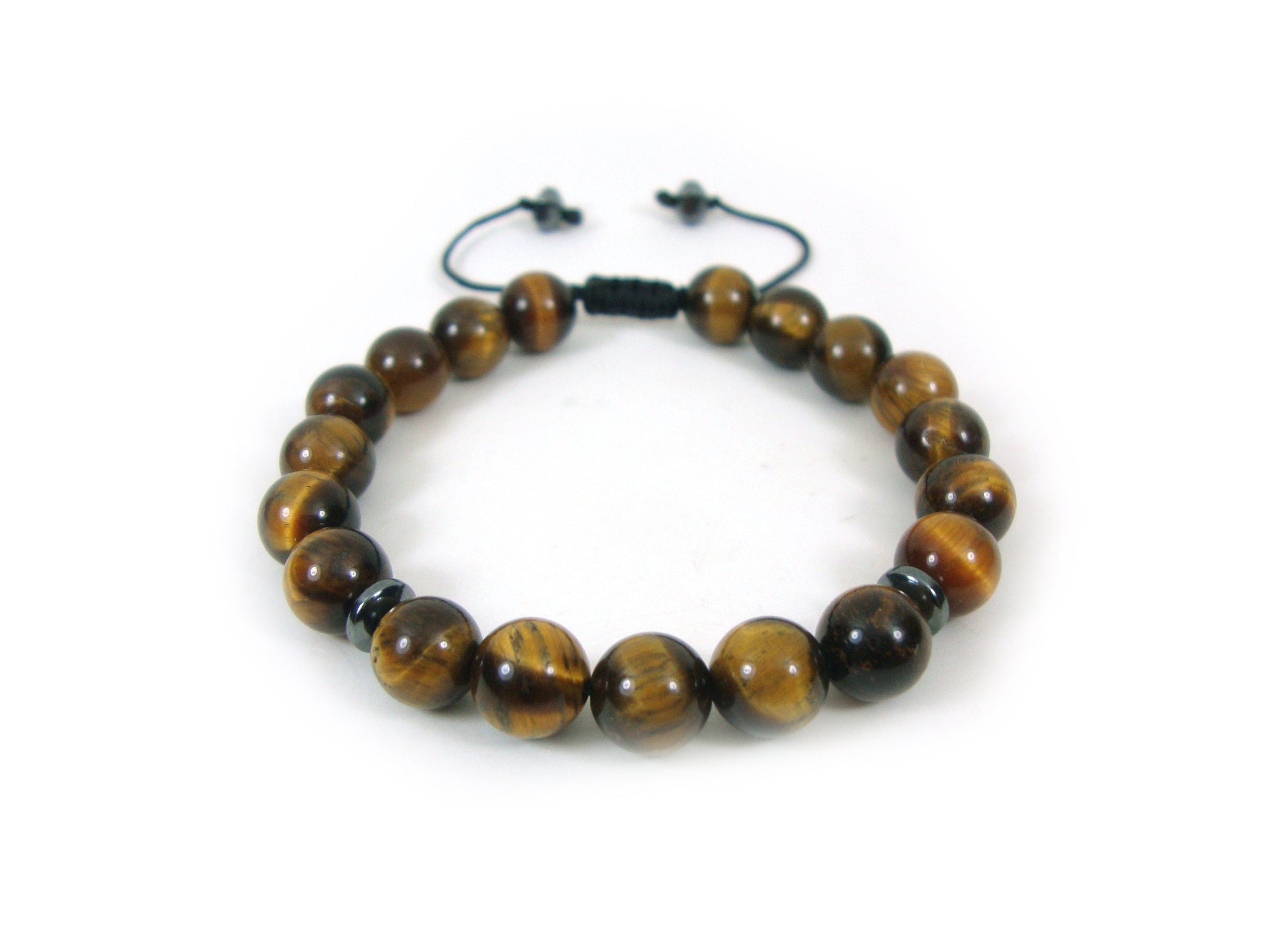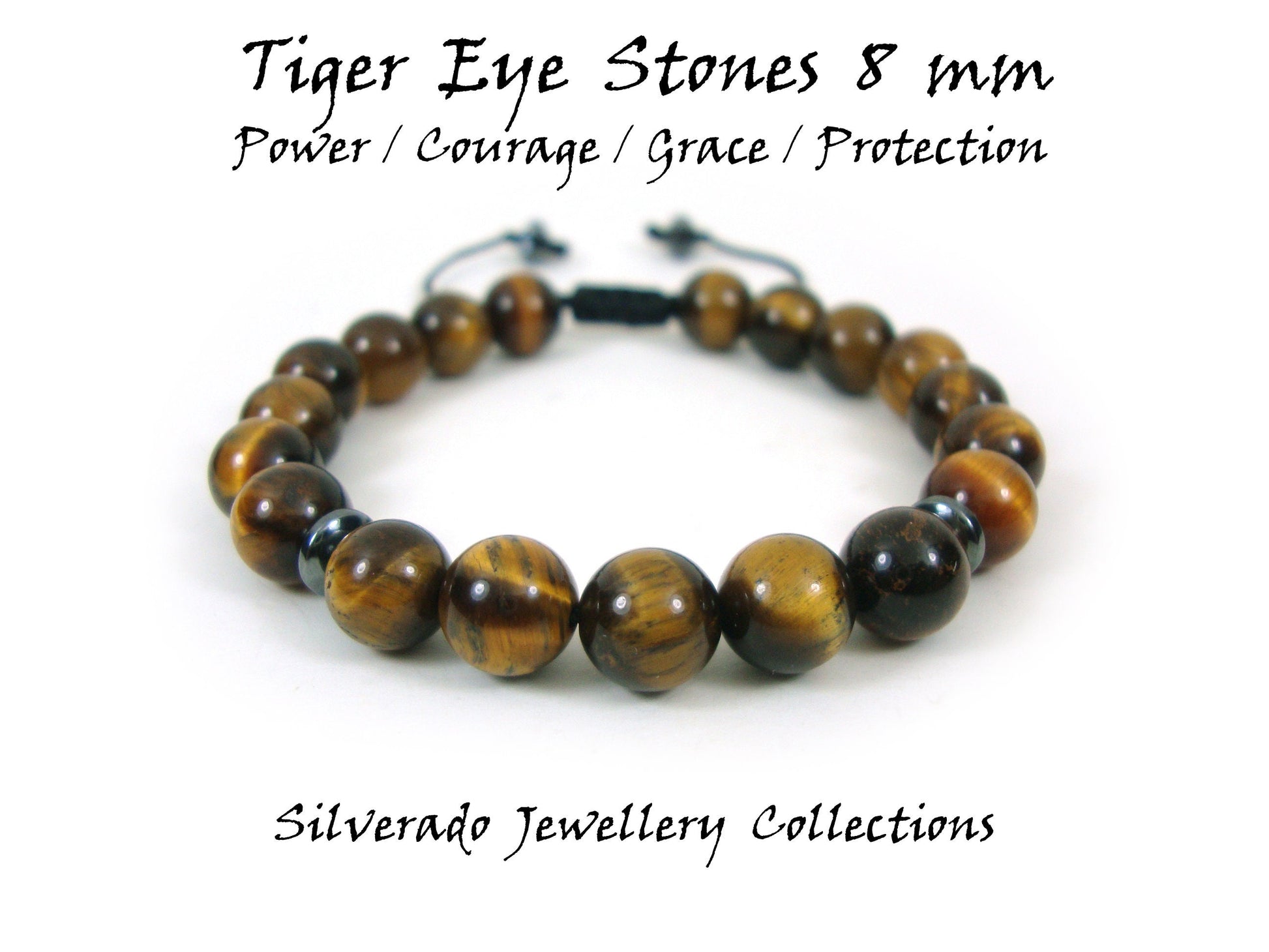 Natural Tiger Eye Power Strength Stamina Stones 8mm Gemstone Bracelet, Men Women Unisex Bracelet, Tiger Eye Boho Adjustable Bracelet