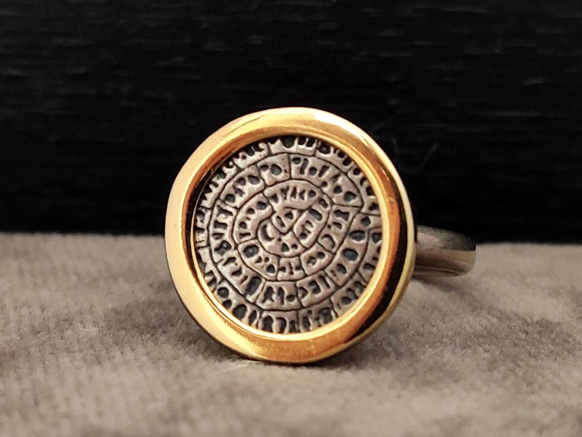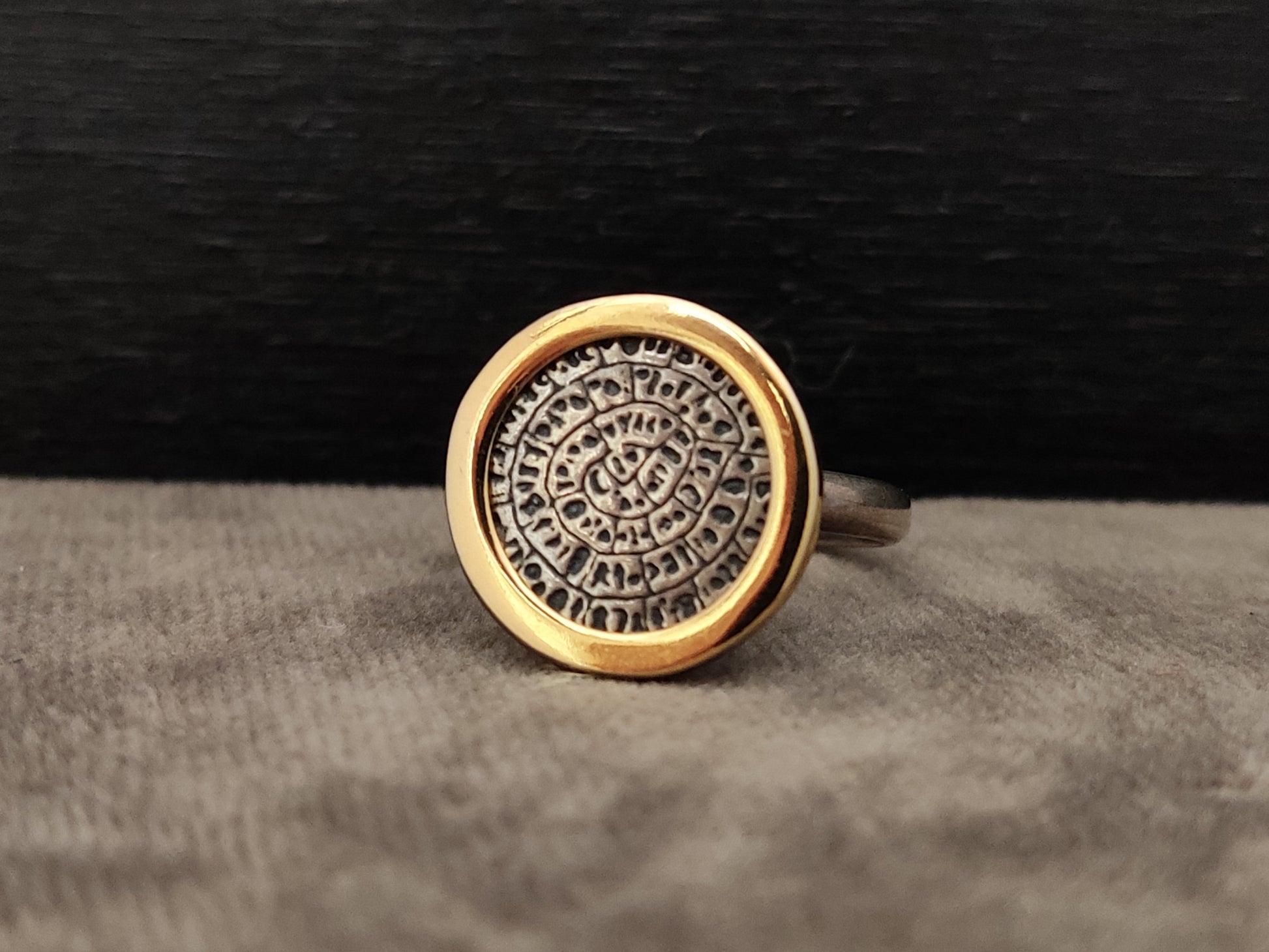 Phaistos Disc Greek Silver Gold Plated Ring 15mm