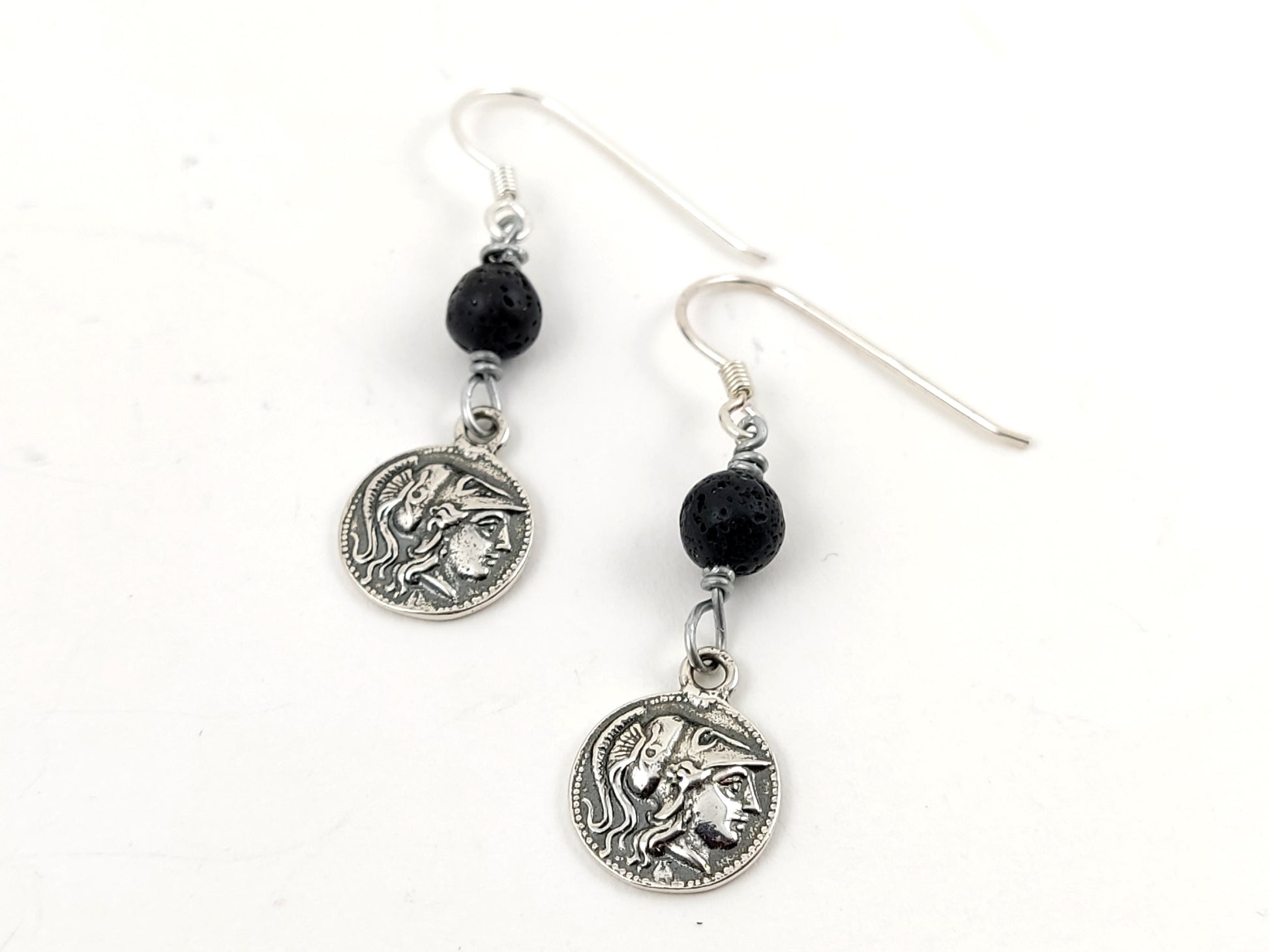 Introducing our stunning Sterling Silver 925 Dangle Earrings, featuring 6mm Volcanic Lava beads and a Replica Greek Coin charm. With a width of 13mm (0.50 inches) and a length of 30mm (1.17 inches), these earrings are marked 925 and proudly made in Greece. Enjoy the elegance of these unique earrings with FREE SHIPPING WORLDWIDE!
