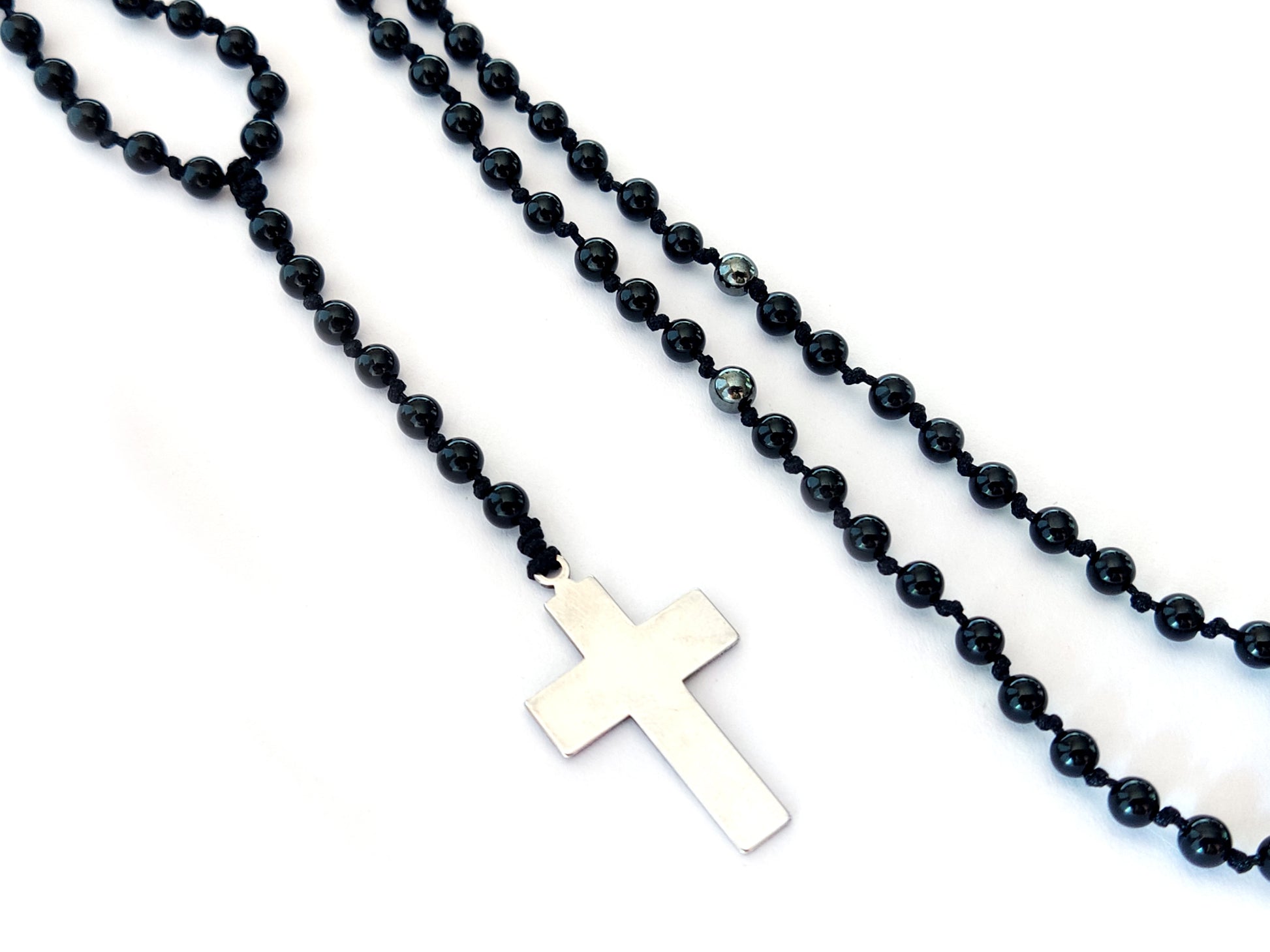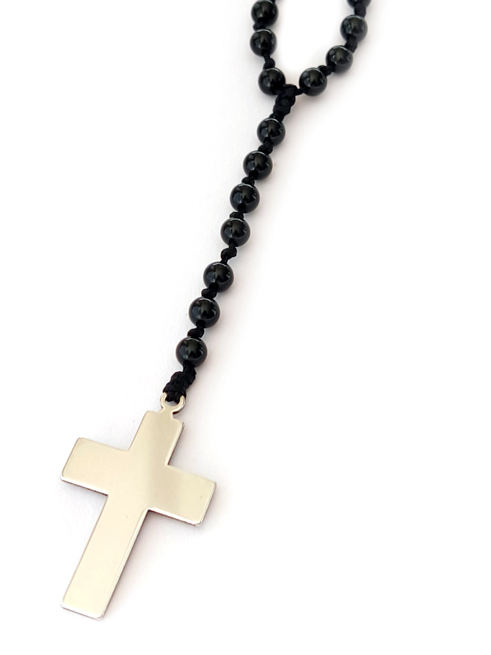 Handcrafted Black Onyx Rosary Cross Necklace