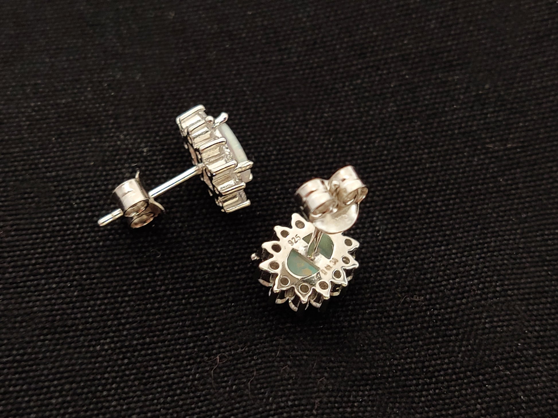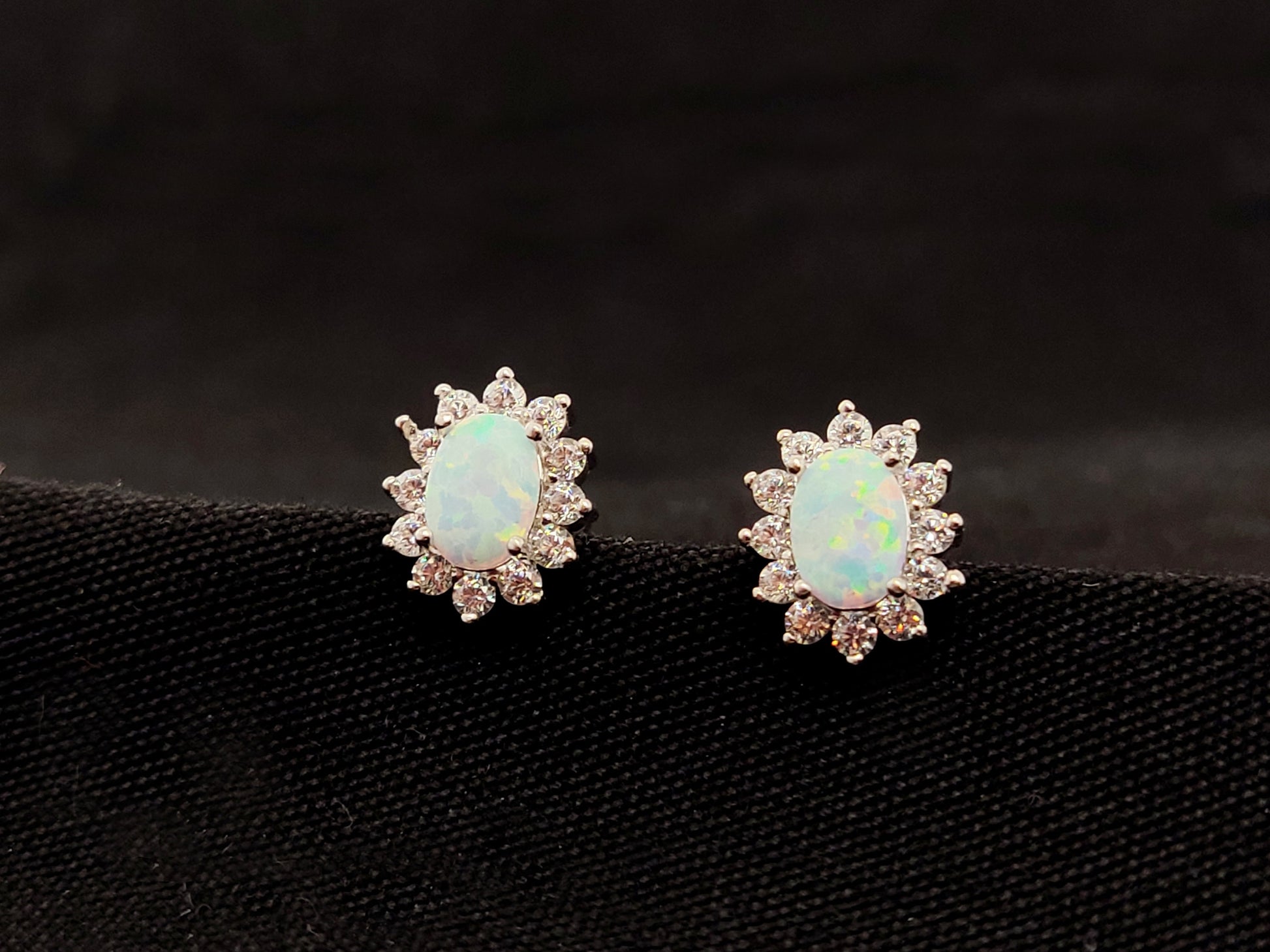 Sterling Silver 925 Oval Rosetta White Opal Small Stud Earrings 9x10mm, Opal Crystals Earrings, Griechisches Silber Ohrringe Bijoux Grecque